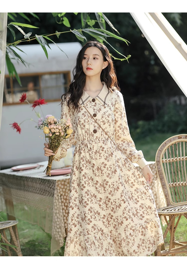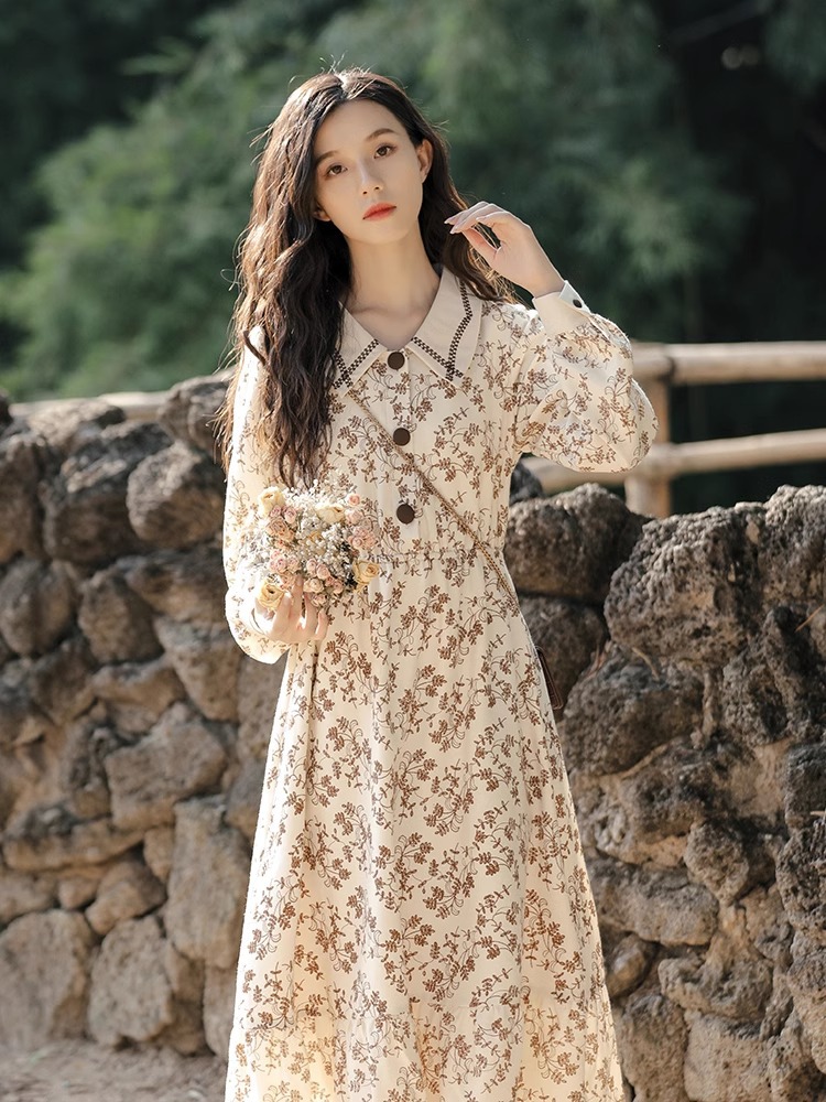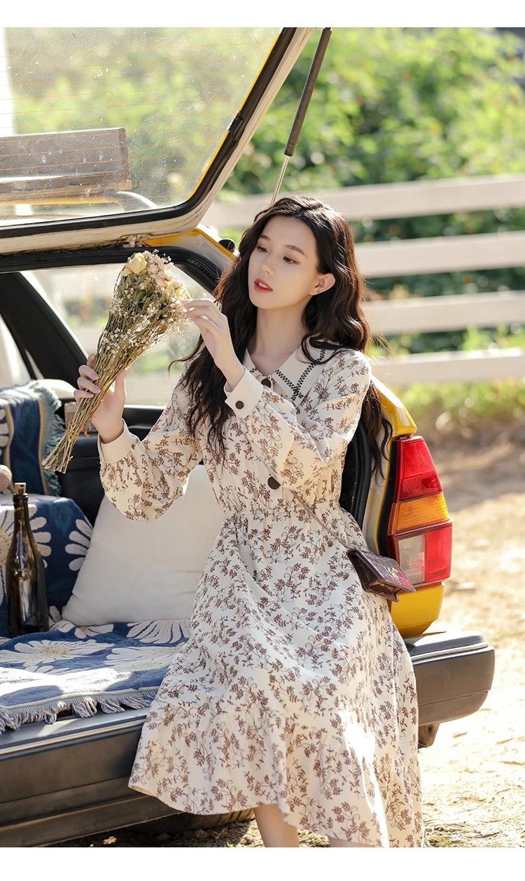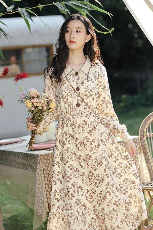 2024 봄 새로운 프랑스 부드러운 긴팔 셔츠 꽃 원피스 여성 의류 하이 엔드 기질 슬리밍 작은스토어 가기