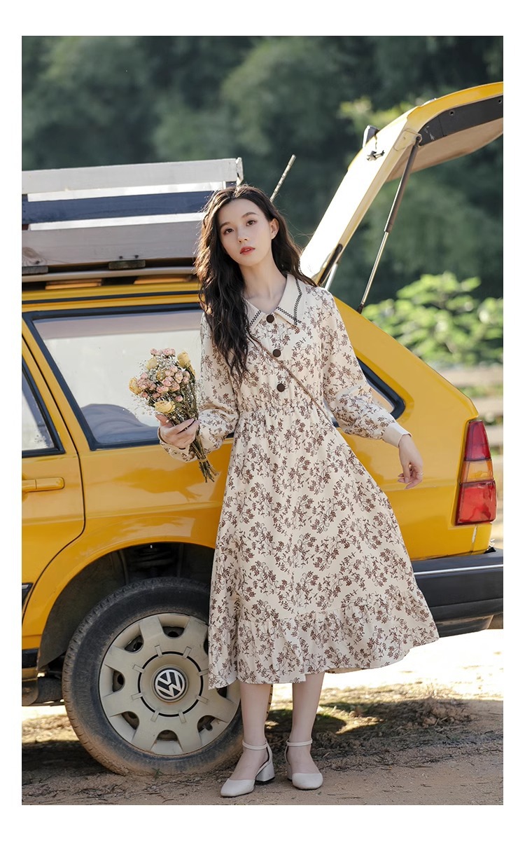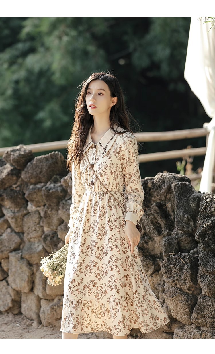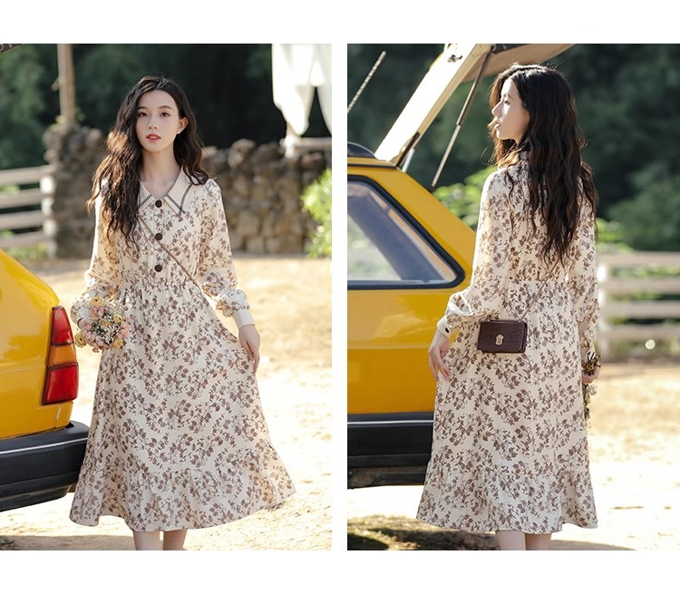 2024 봄 새로운 프랑스 부드러운 긴팔 셔츠 꽃 원피스 여성 의류 하이 엔드 기질 슬리밍 작은