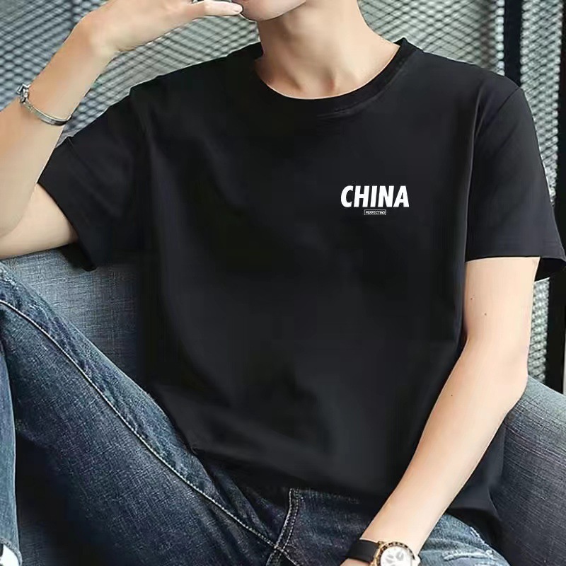 Yu Wenle 여름 반팔 티셔츠 남성용 캐주얼 간단한 편지 둥근 목에 패션 브랜드 홍콩 스타일 최고 남성 티셔츠 도매스토어 가기