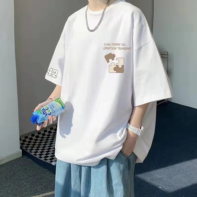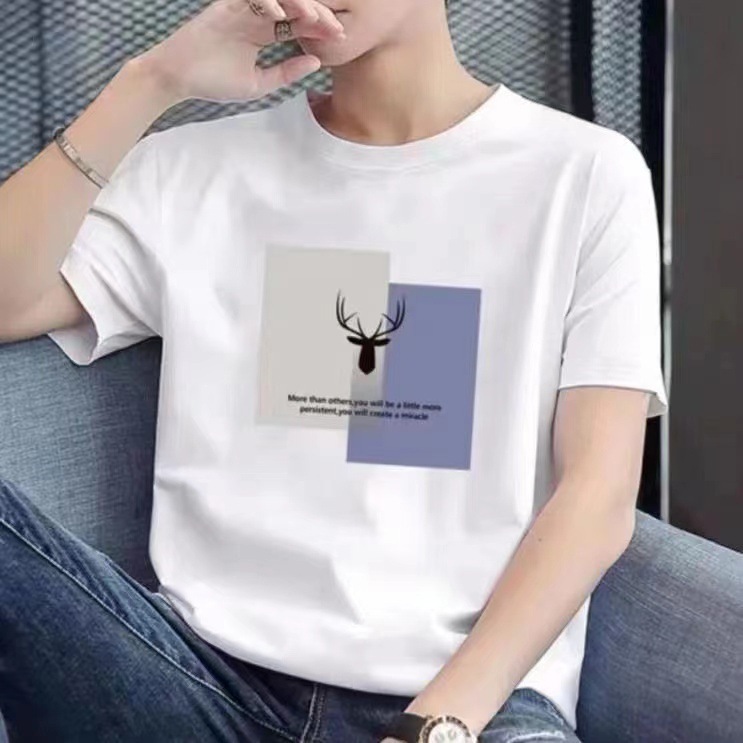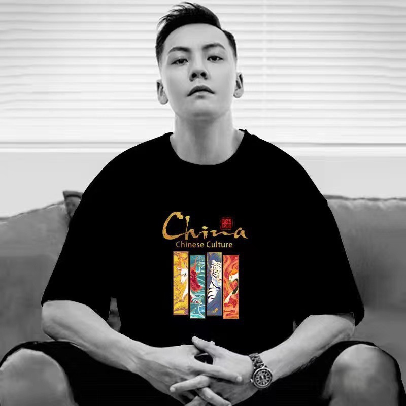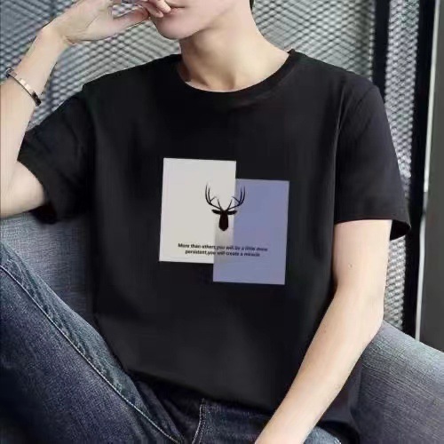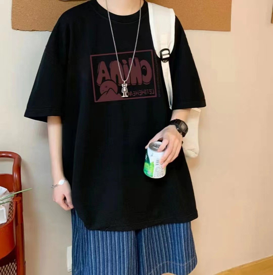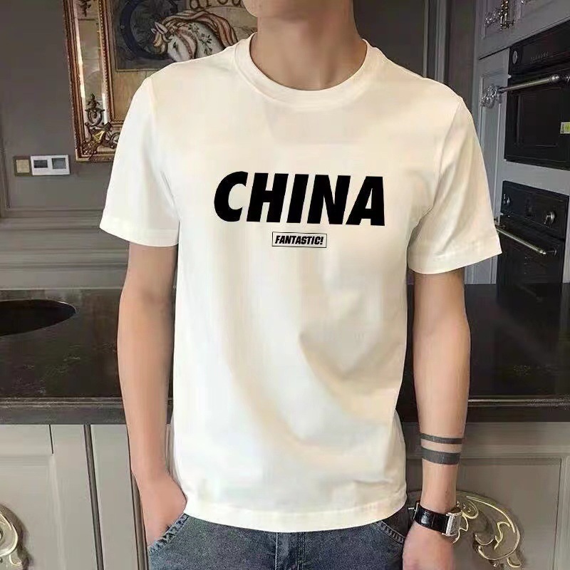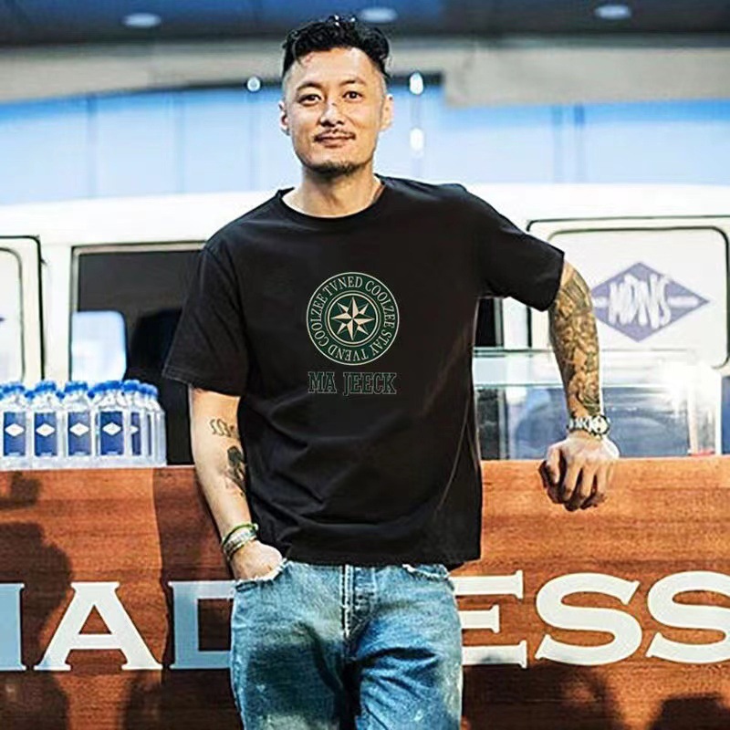 Yu Wenle 여름 반팔 티셔츠 남성용 캐주얼 간단한 편지 둥근 목에 패션 브랜드 홍콩 스타일 최고 남성 티셔츠 도매