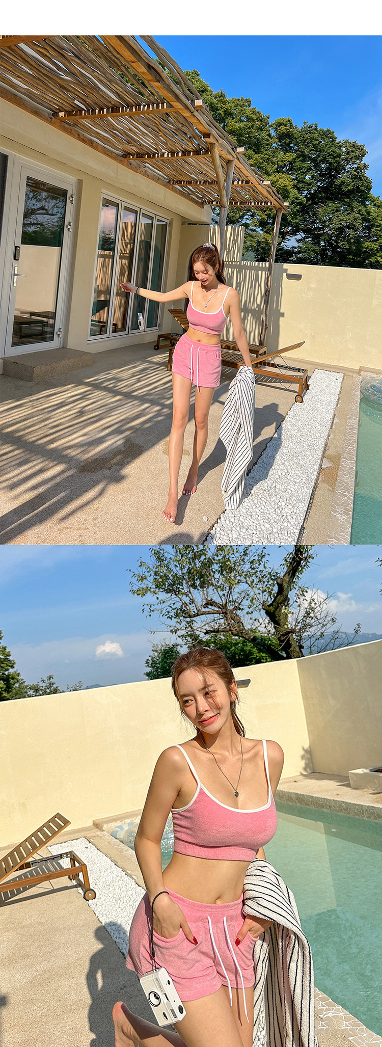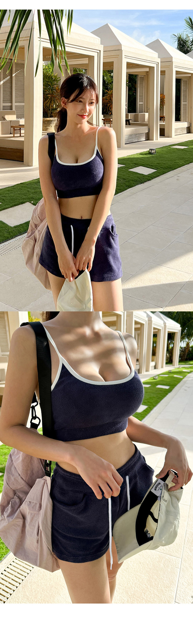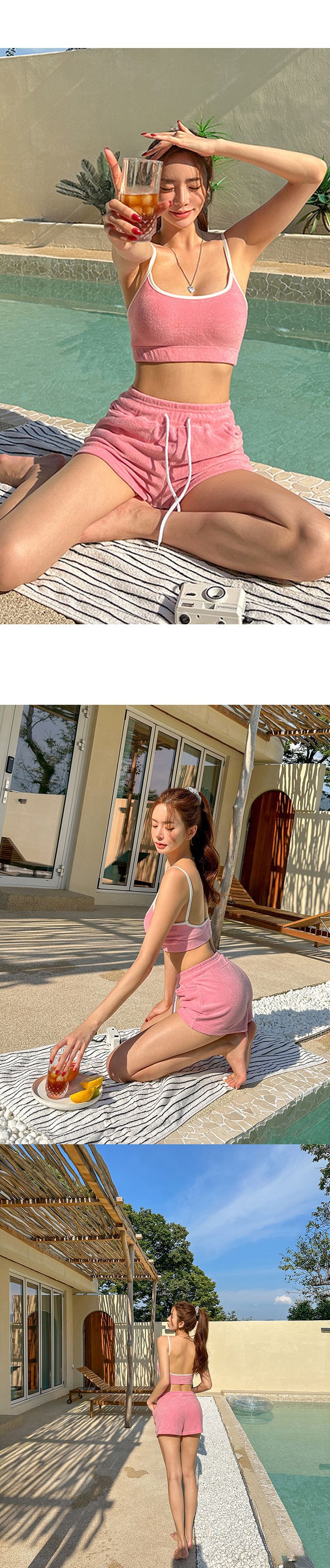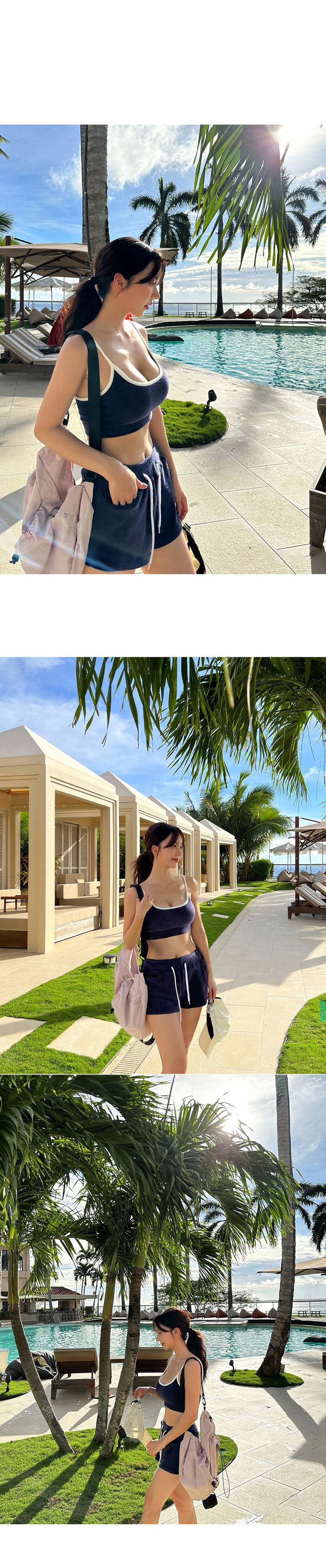 한국 스타일, 단색 분할 투피스 섹시한 등이없는 가슴이 권투 선수 온천 휴가 수영복을 밀어스토어 가기