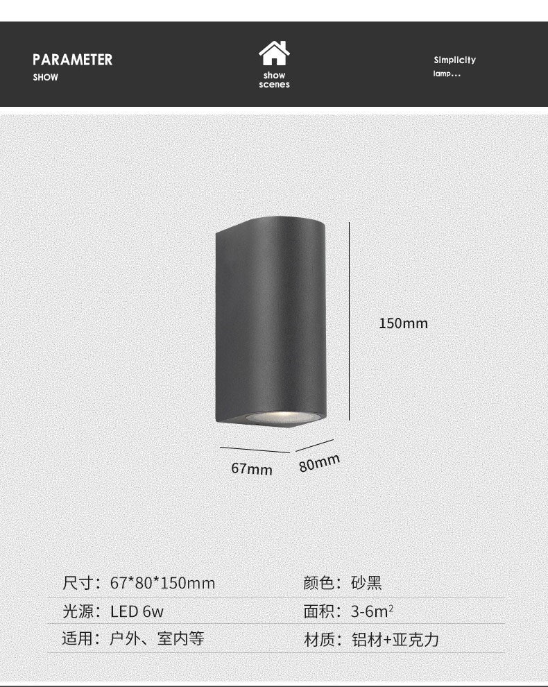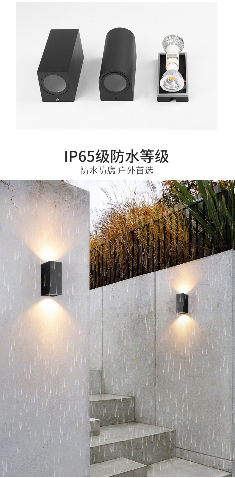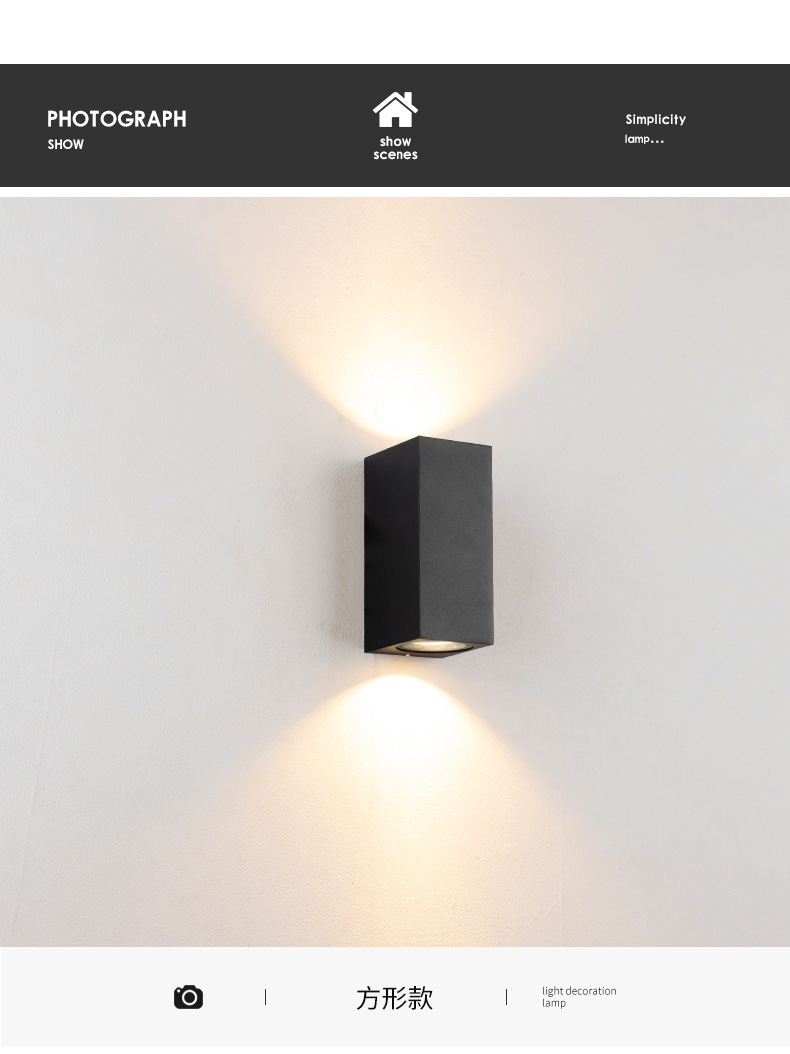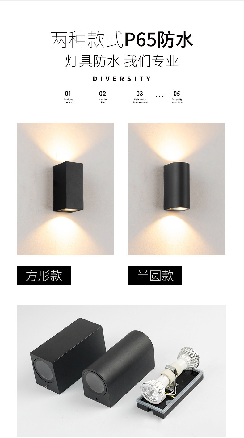 GU10 램프 홀더 야외 벽 램프 방수 더블 헤드 외벽 빌라 도어 안뜰 램프 배경 위아래로 빛나는 스포트라이트