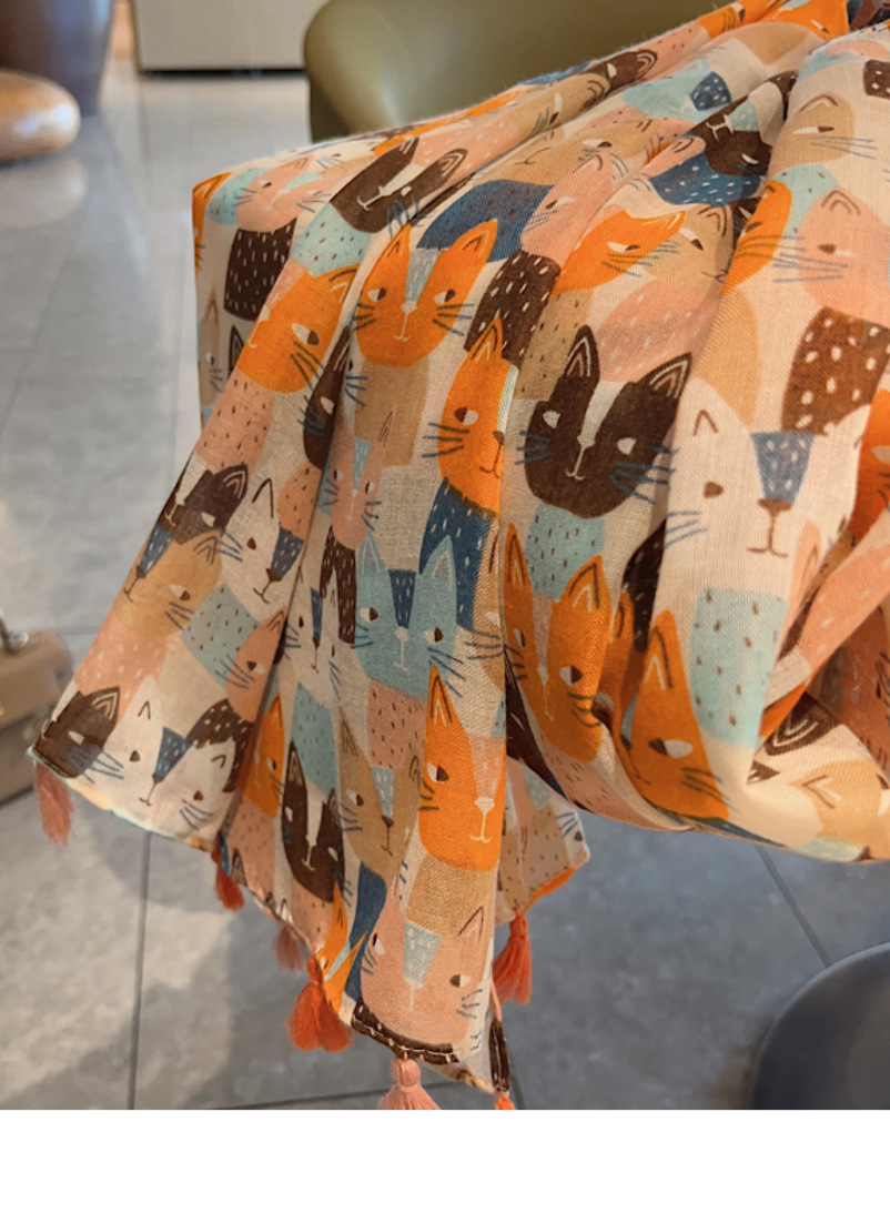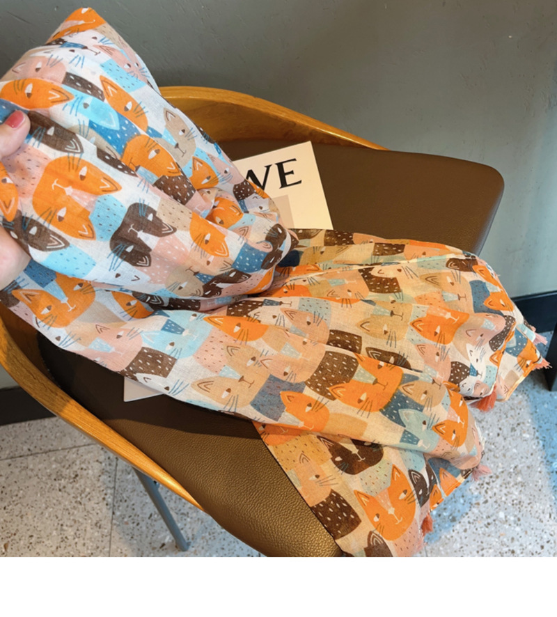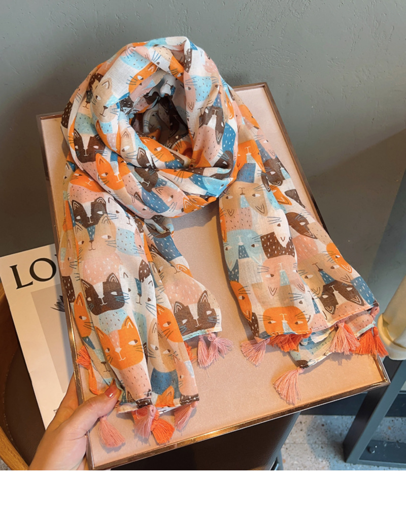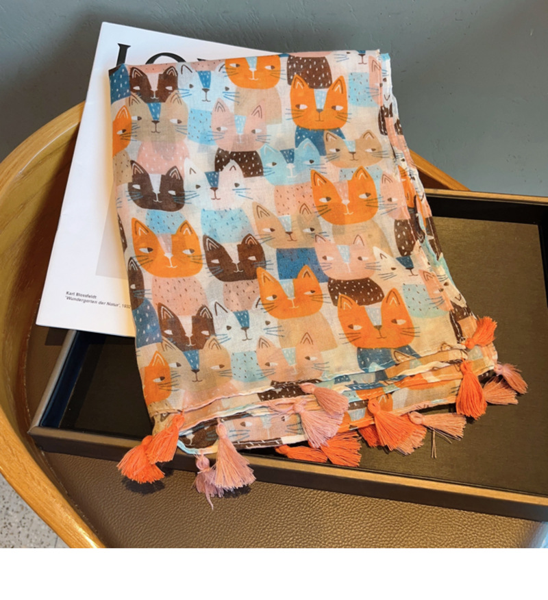 나이를 줄이는 치유 시리즈 ~ 수제 고양이 넓은 긴면과 린넨 스카프 여성의 봄 새로운 여행 목도리 스카프스토어 가기