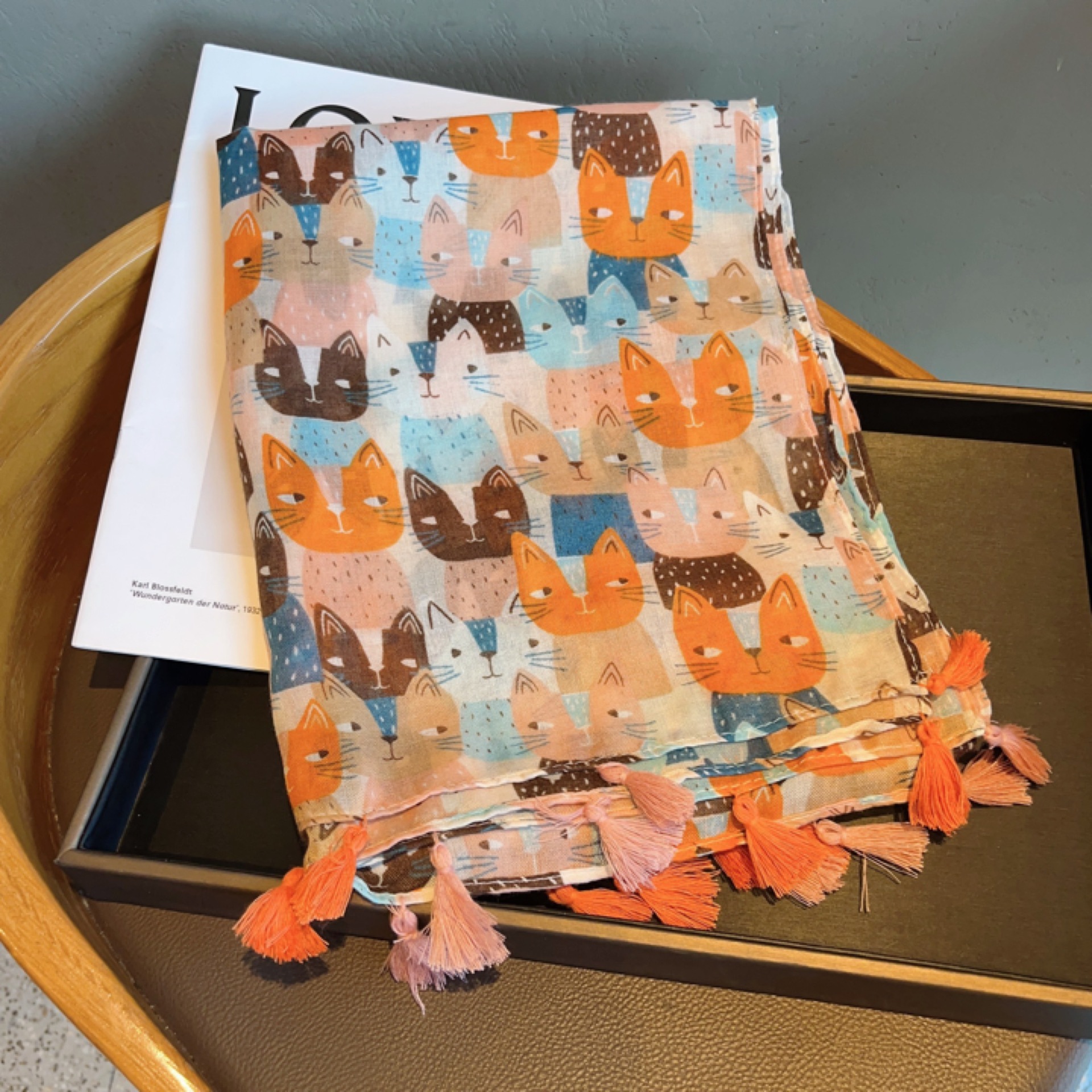 减龄治愈系~手工须猫咪宽大长款棉麻围巾女春季新款旅游披肩纱巾
