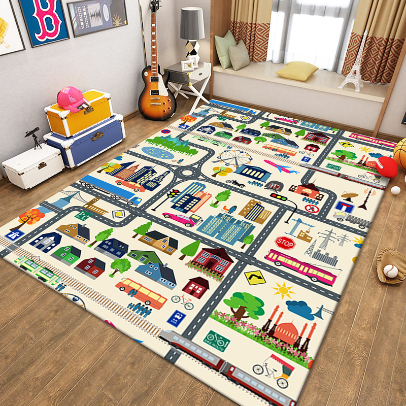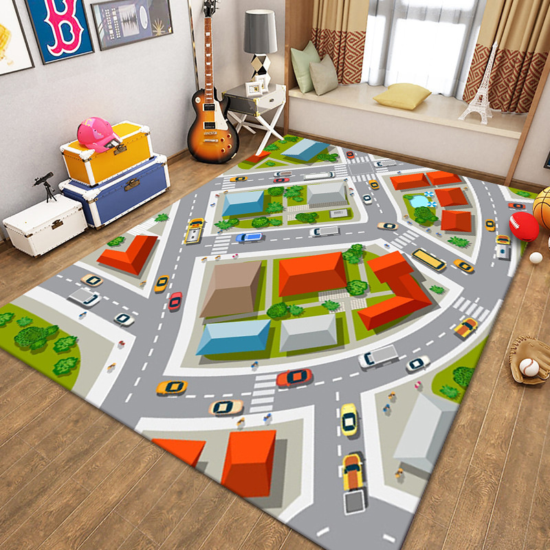 국경 간 어린이 크롤링 카펫 도시 교통 현장지도 장난감 담요 도로 트랙 주차장 바닥 매트