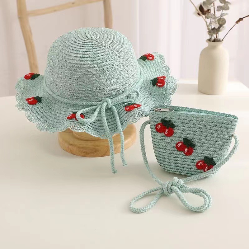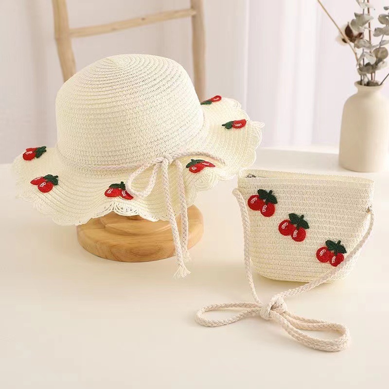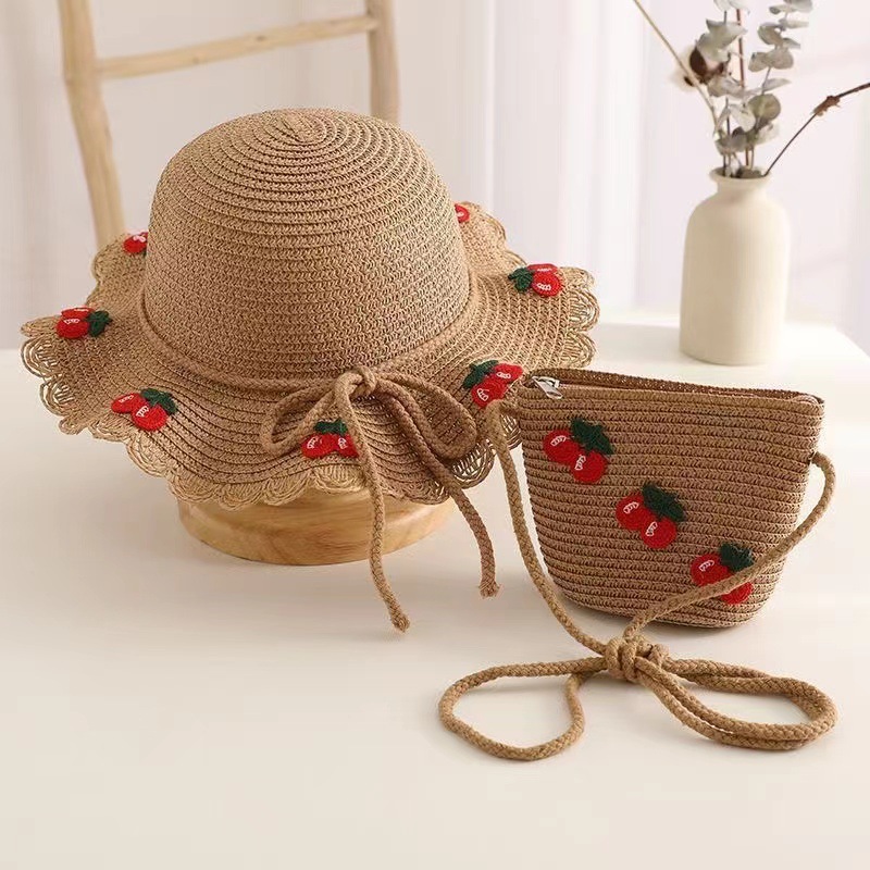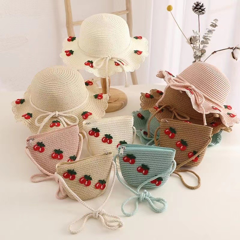 어린이 태양 모자 소녀 여름 여행 휴가 밀짚 모자 아름다운 체리 아기 어린 소녀 태양 모자 밀짚 짠