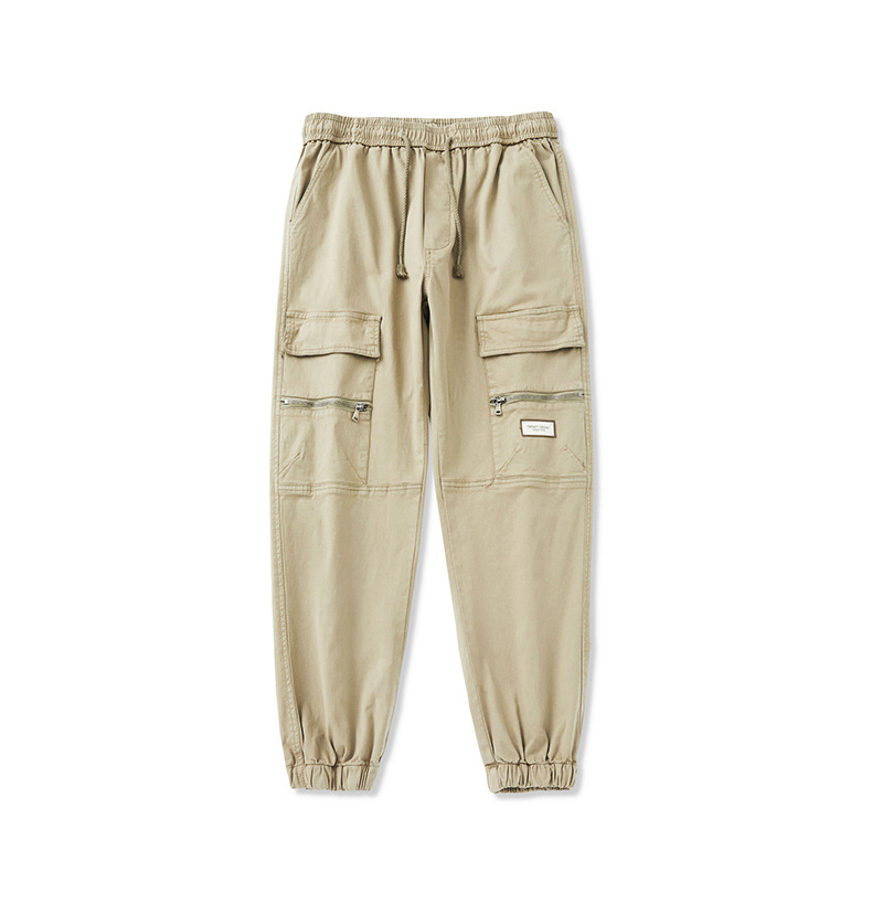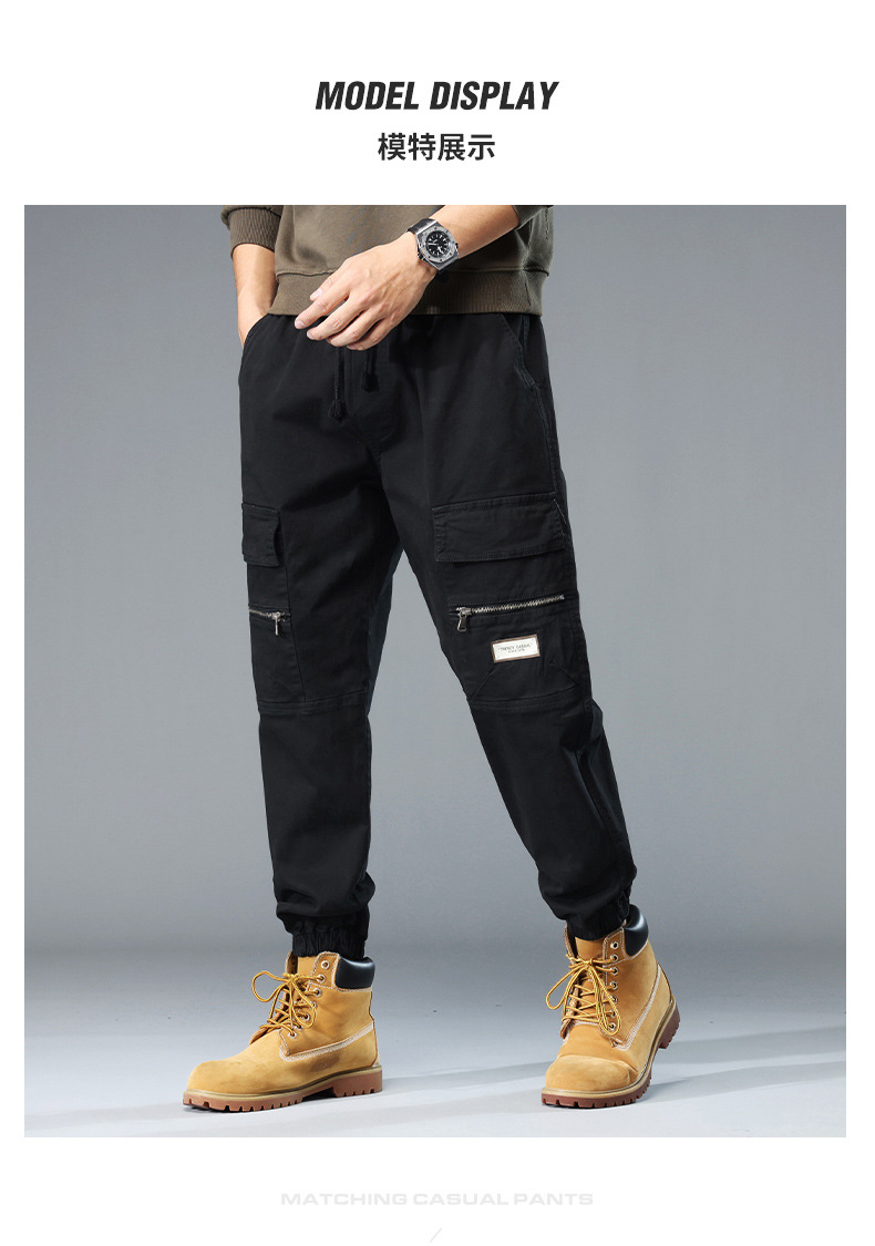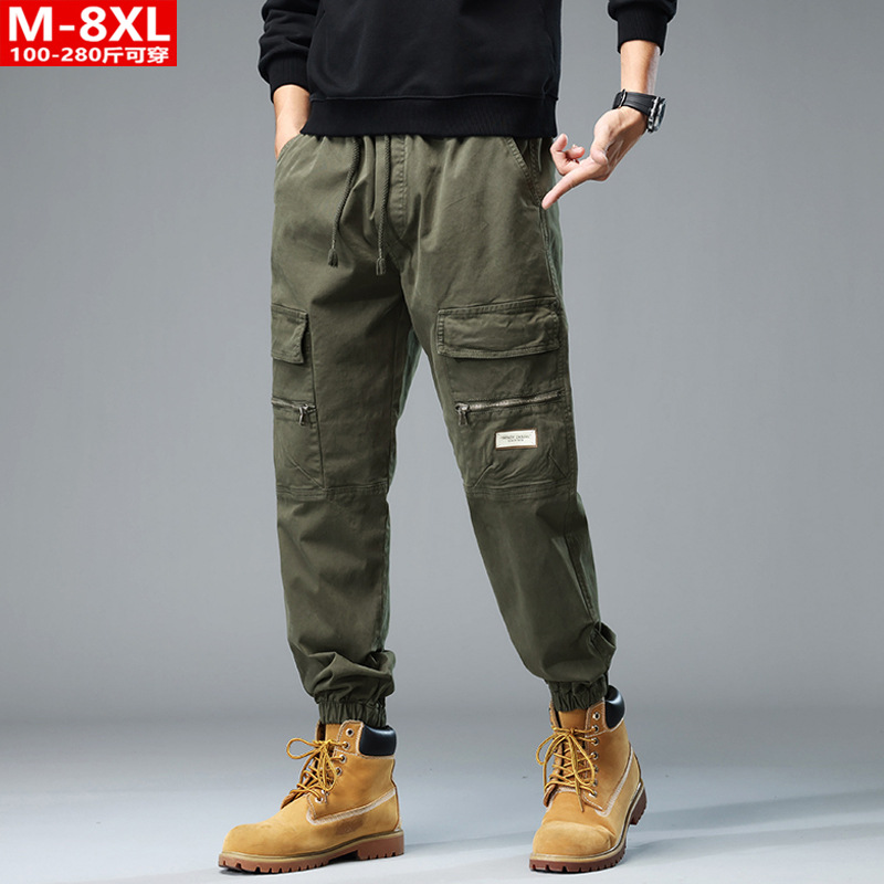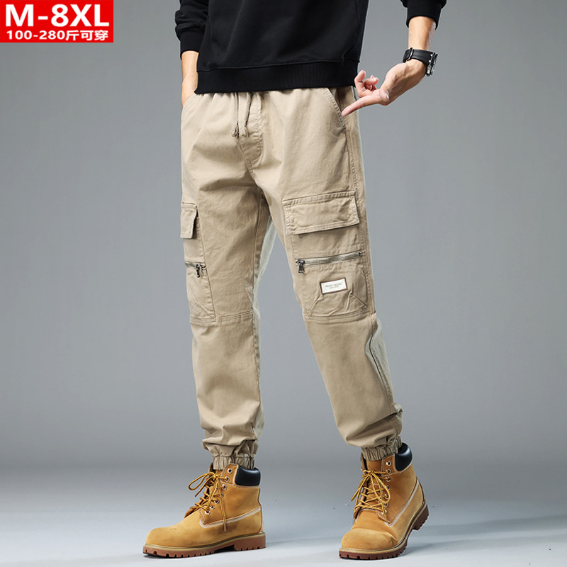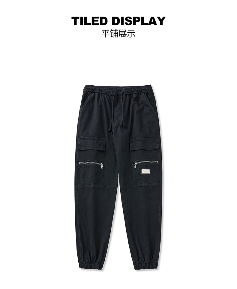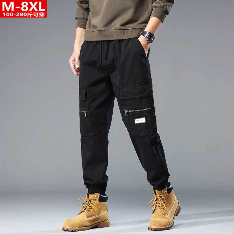 봄과 가을의 트렌디 한 품질의 남성용 발목을 묶은 올 매치 지퍼 패치 백은 대형 플러스 사이즈 느슨한 캐주얼 팬츠입니다.스토어 가기