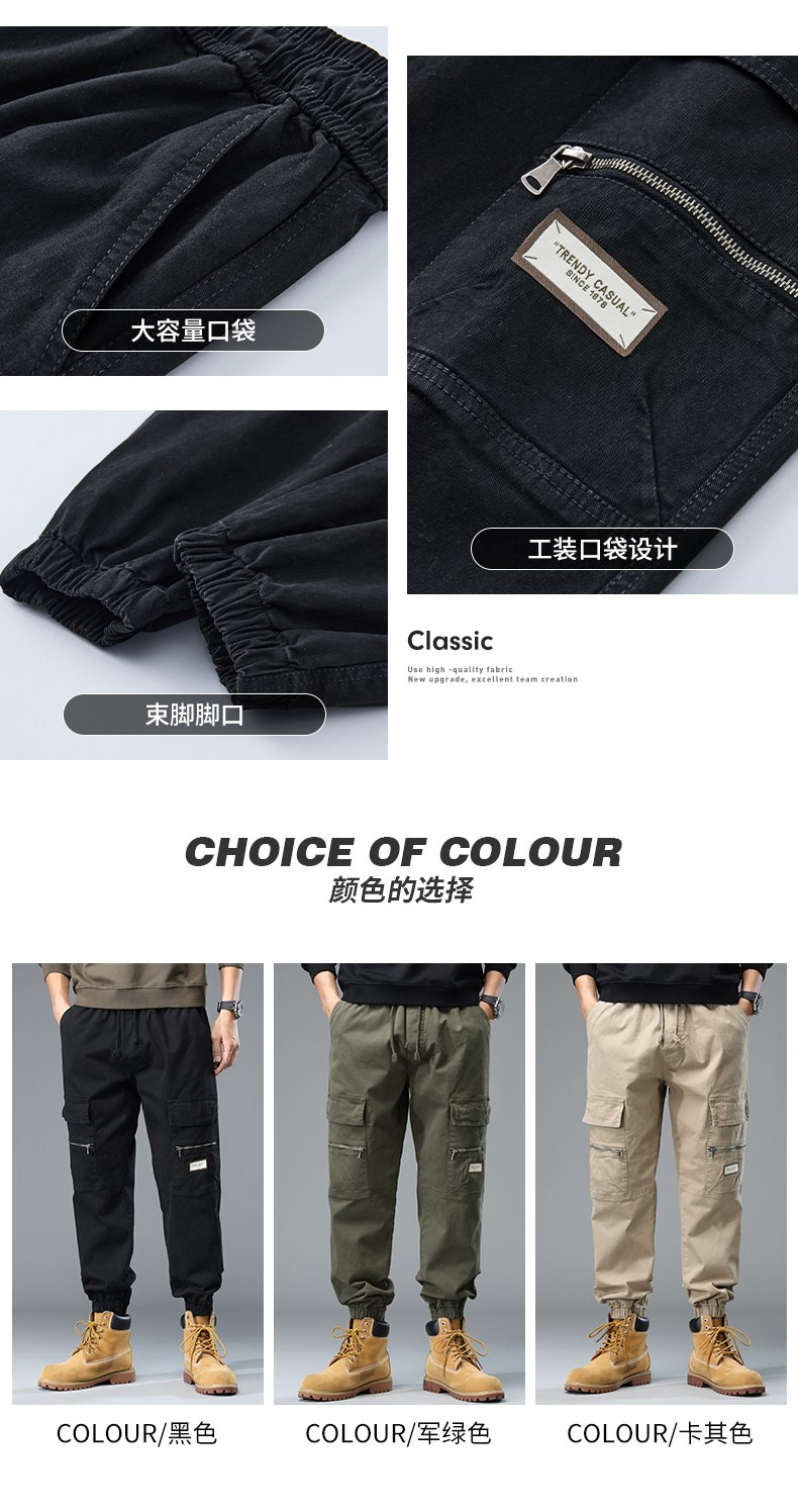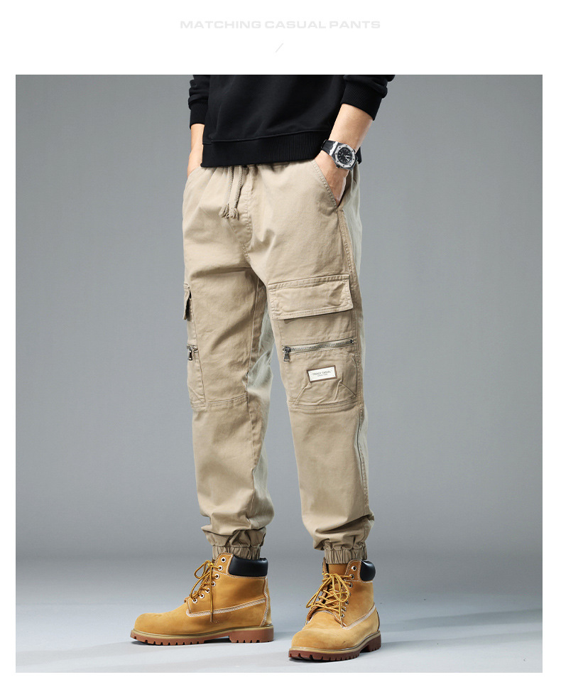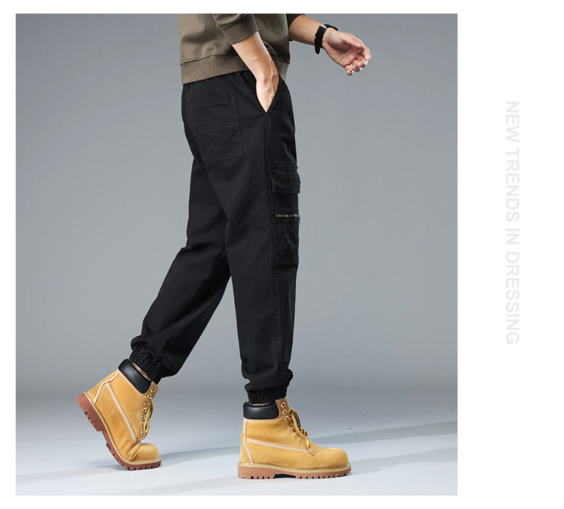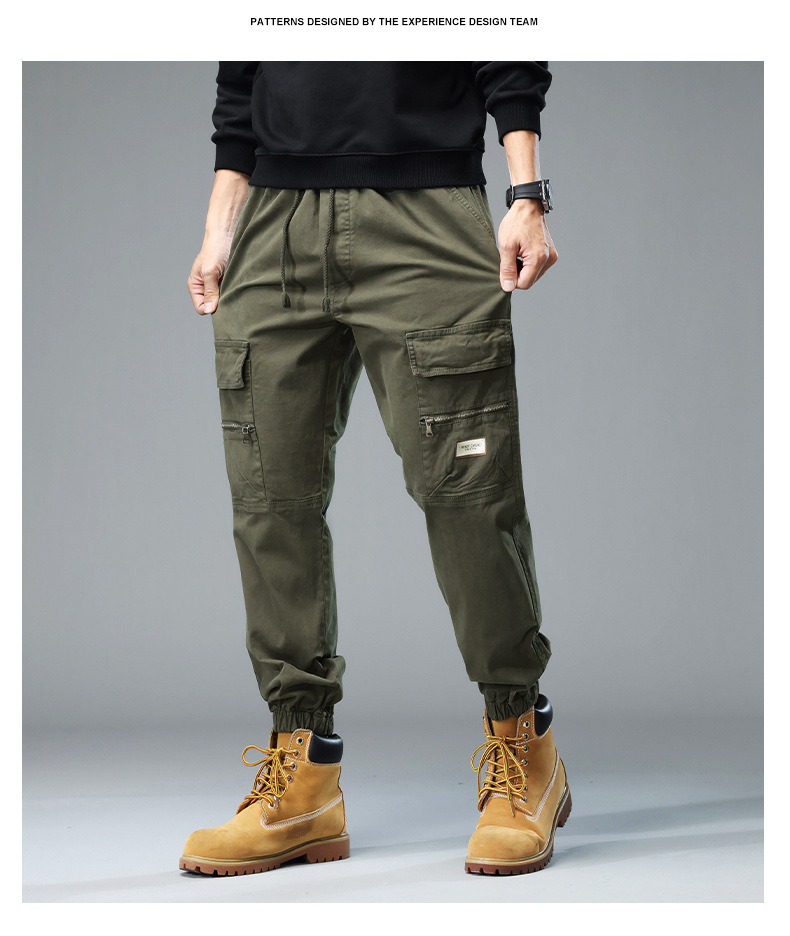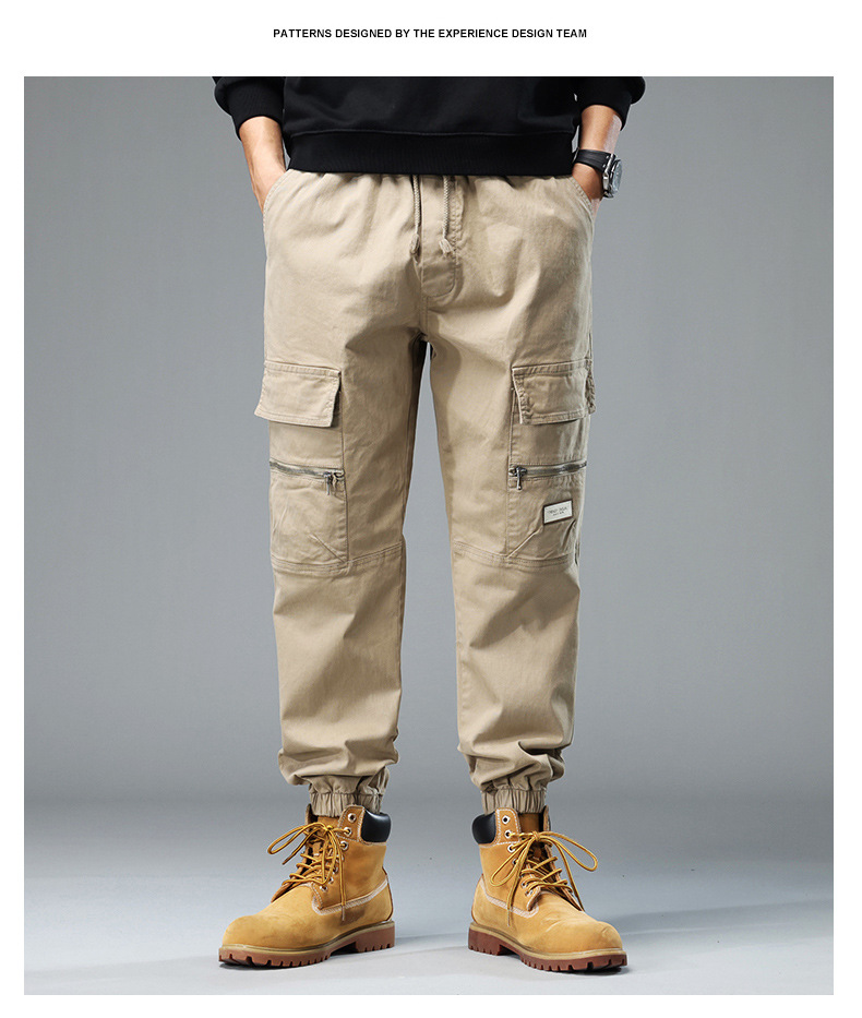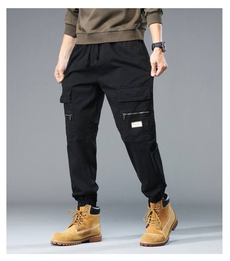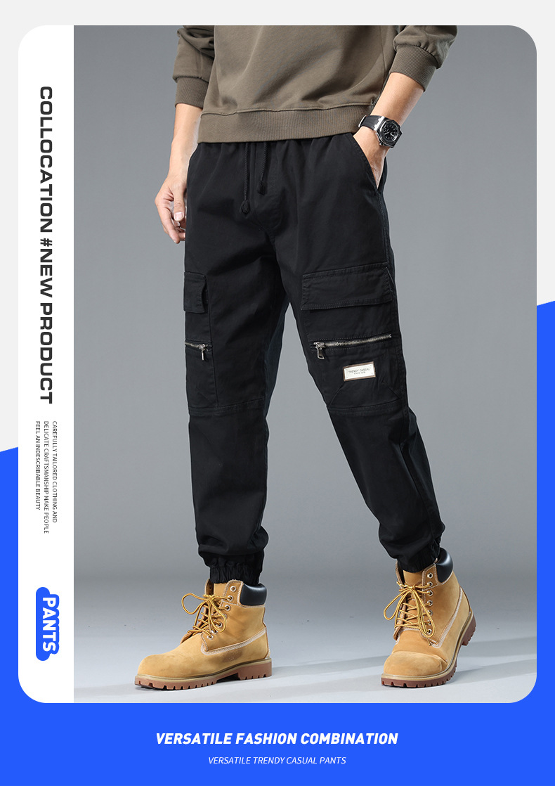 봄과 가을의 트렌디 한 품질의 남성용 발목을 묶은 올 매치 지퍼 패치 백은 대형 플러스 사이즈 느슨한 캐주얼 팬츠입니다.스토어 가기