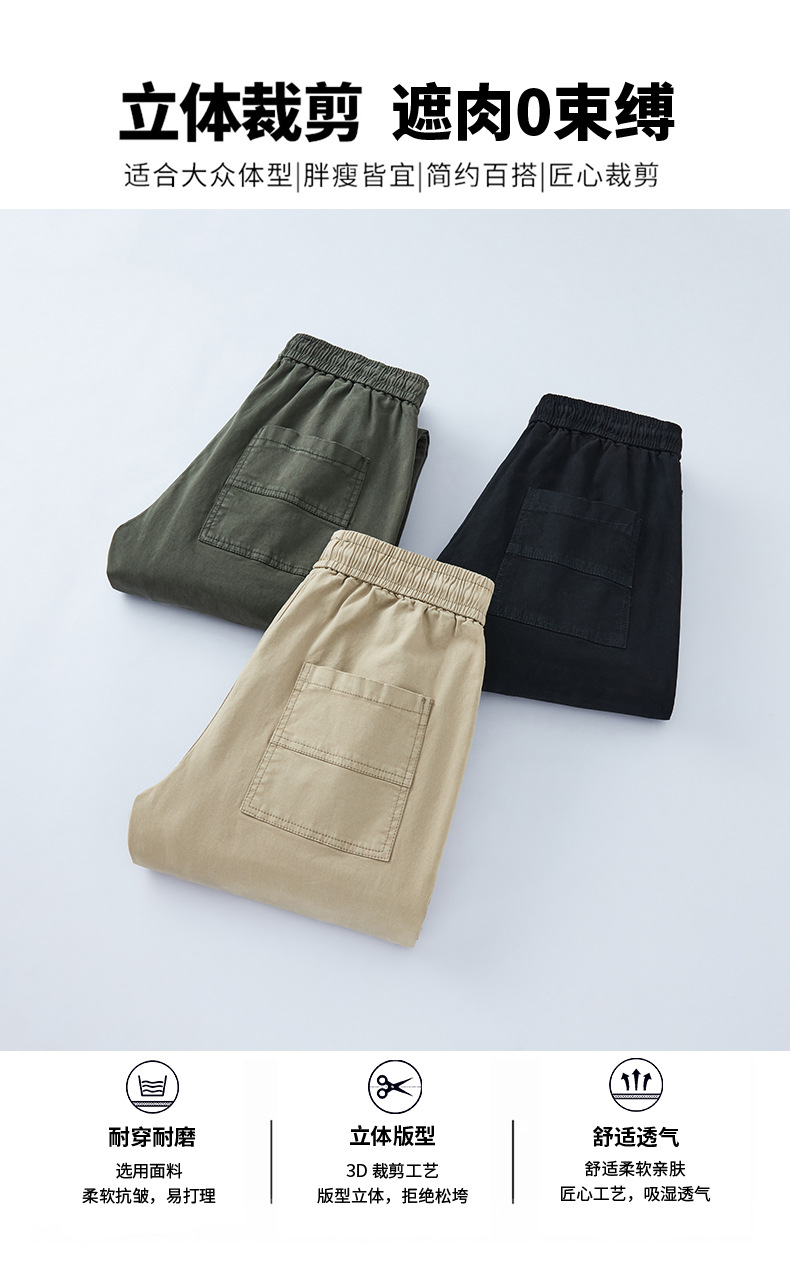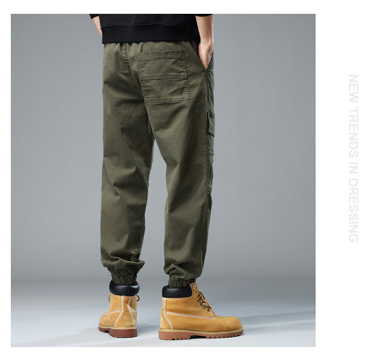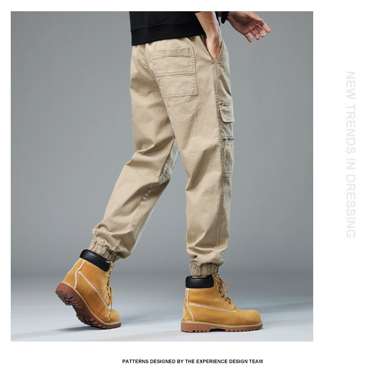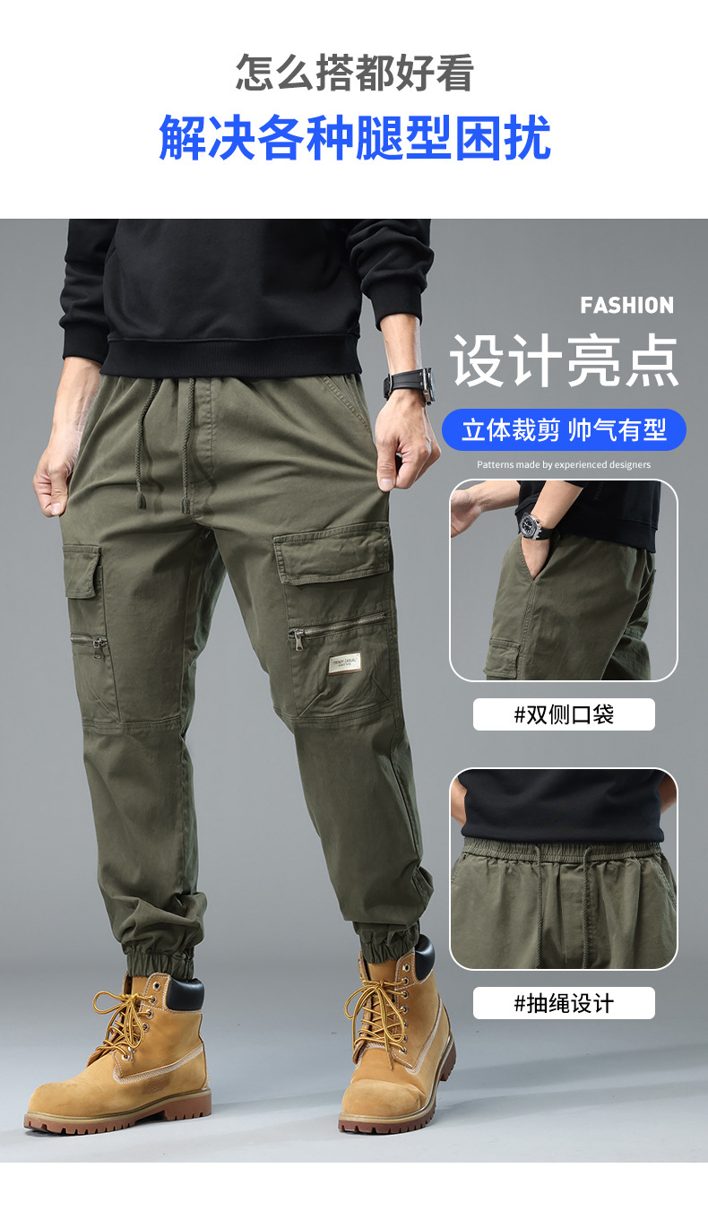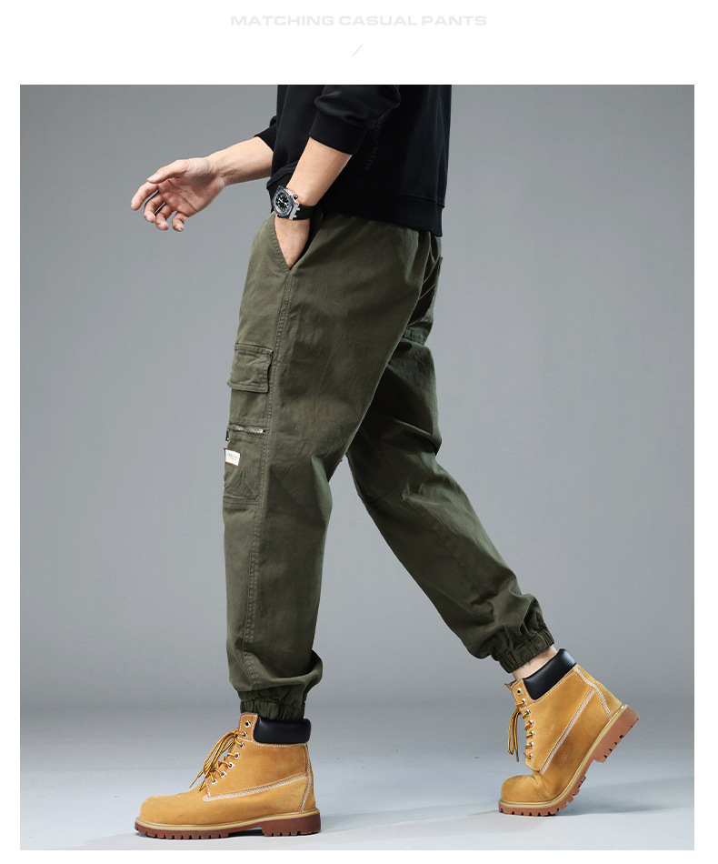 봄과 가을의 트렌디 한 품질의 남성용 발목을 묶은 올 매치 지퍼 패치 백은 대형 플러스 사이즈 느슨한 캐주얼 팬츠입니다.스토어 가기