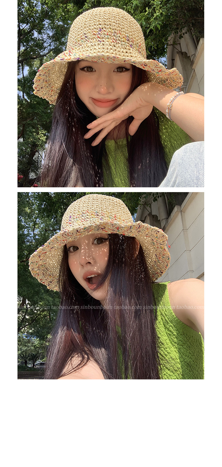 모자 한국식 여름 중공 선 스크린 햇빛 햇살 모자 통기성 핫 컬러 휴가 스타일 여성용 와이드 브릴 짠 밀짚 모자스토어 가기