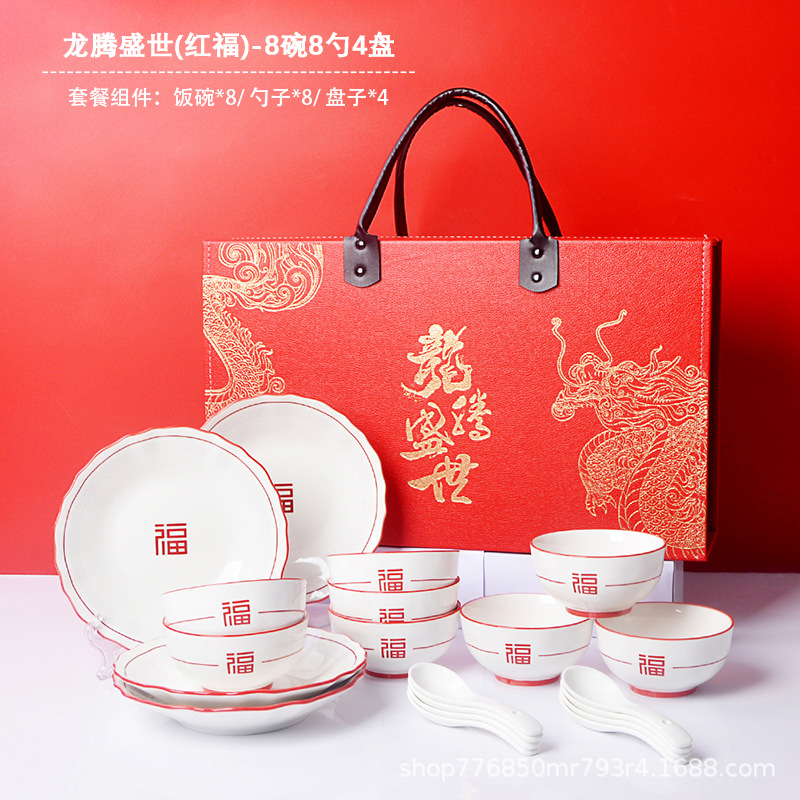 Longteng shengshi Hongfu 세트 세라믹 식기 활동 오프닝 빨간 선물 그릇은 매장 축하 선물을 판매합니다