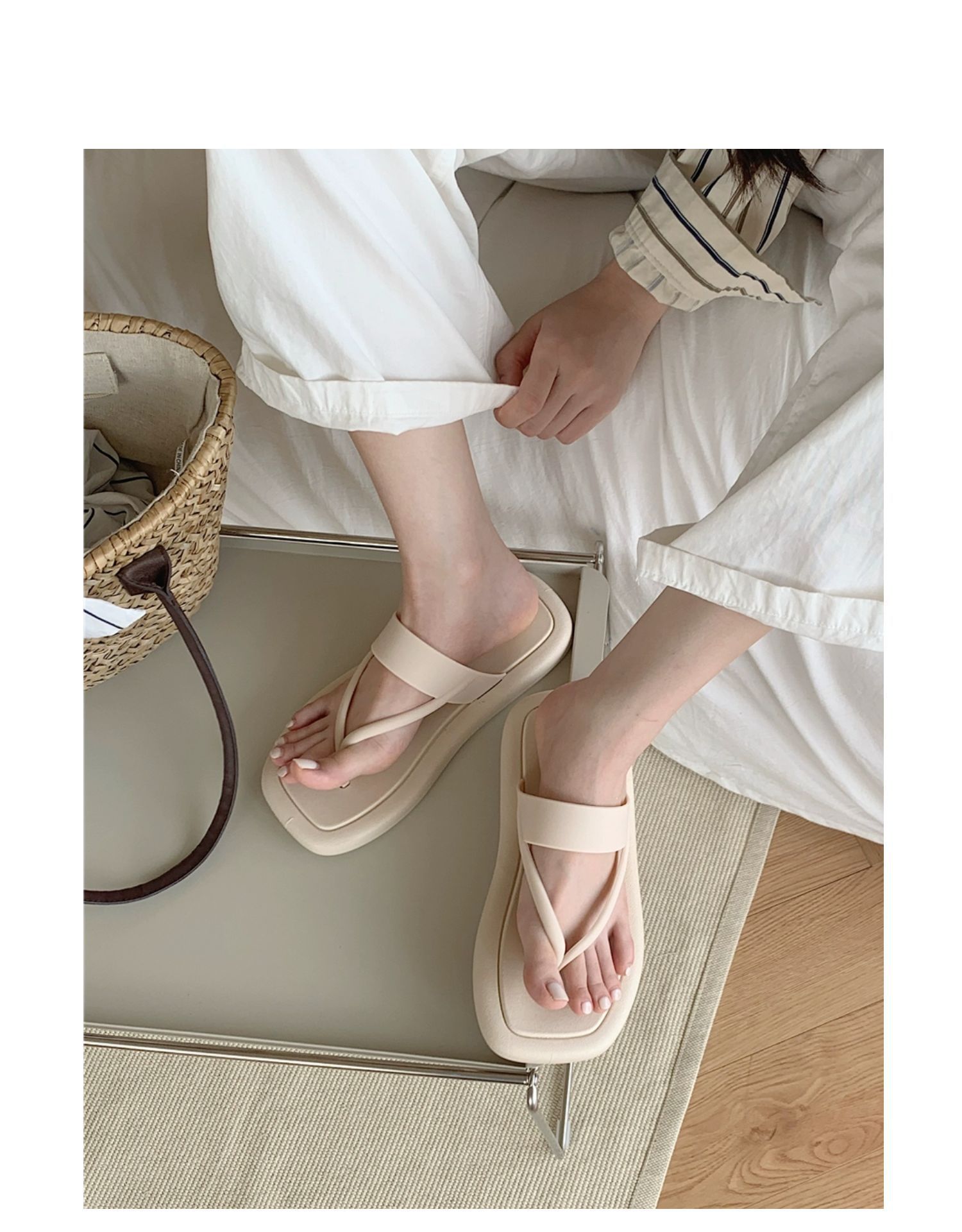 얇은 스트립 여름 캐주얼 새로운 소녀 평면 창조적 인 패션 단색 플립 플롭 비치 신발 야외 플립 플롭