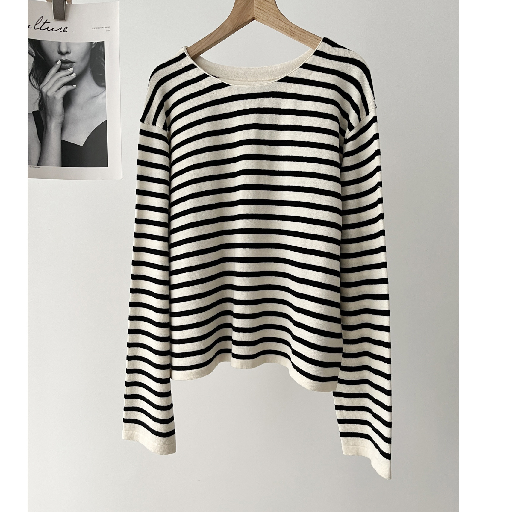 기본 다목적 md 스타일 여성의 캐주얼 게으른 줄무늬 편안한면 라운드 넥 스웨터 긴팔 스웨터스토어 가기