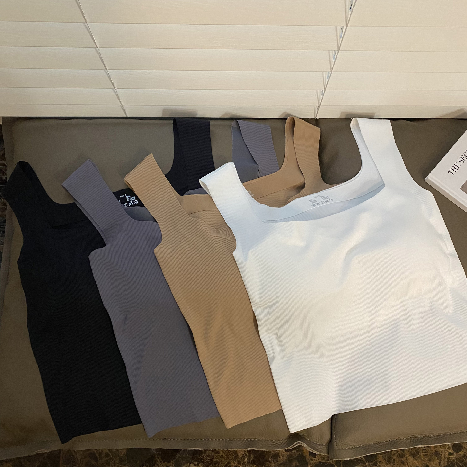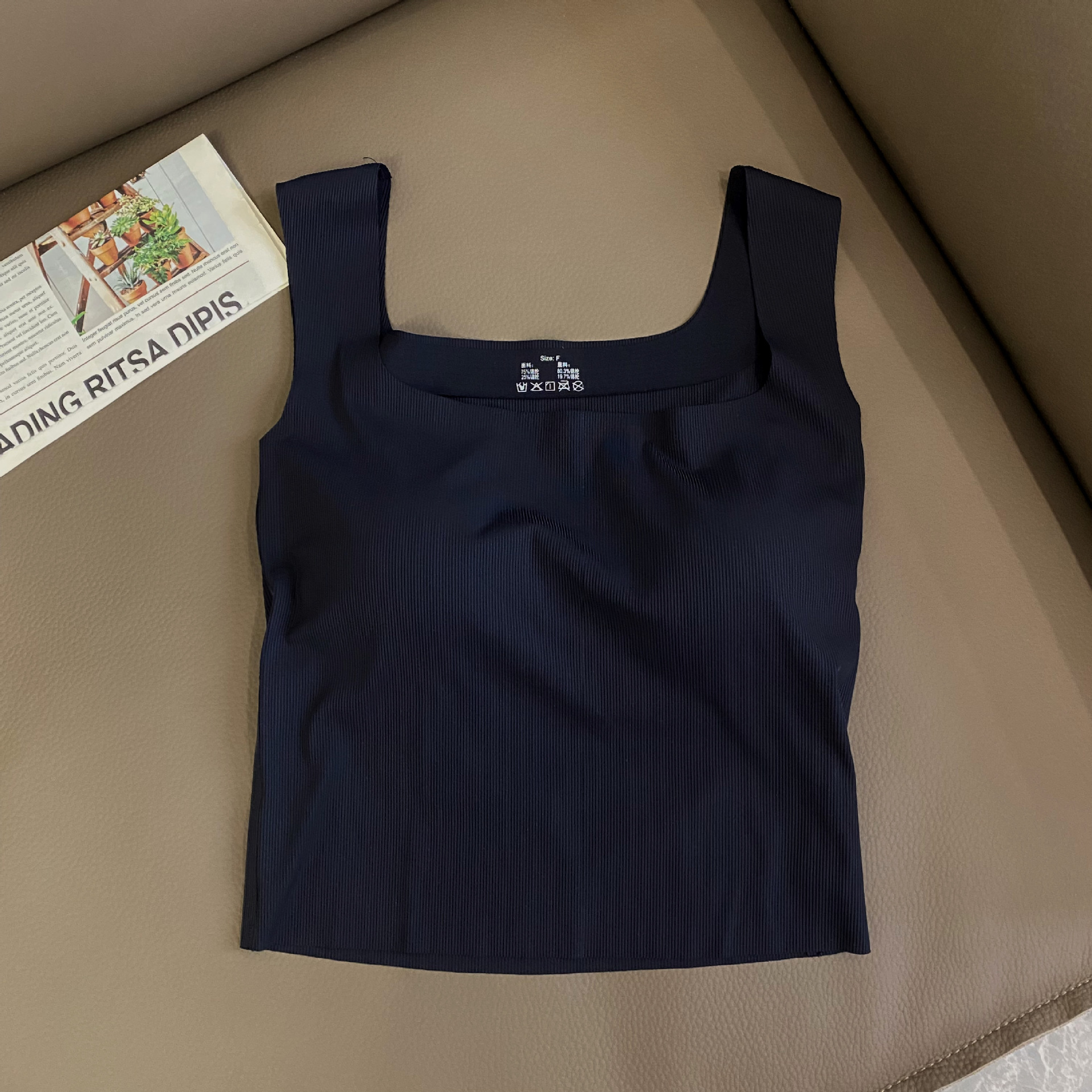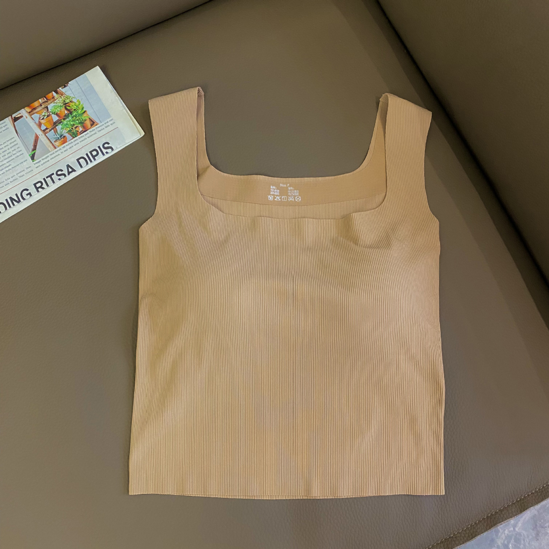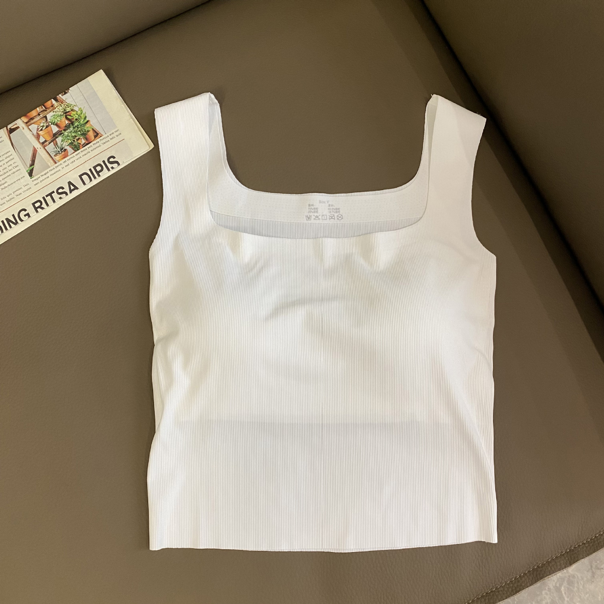 새로운 복고풍 여름 아이스 실크 캐미솔 여성용 민소매 와이드 숄더 스퀘어 칼라 슬림 핏 내복, 가슴 패드 바닥 탑