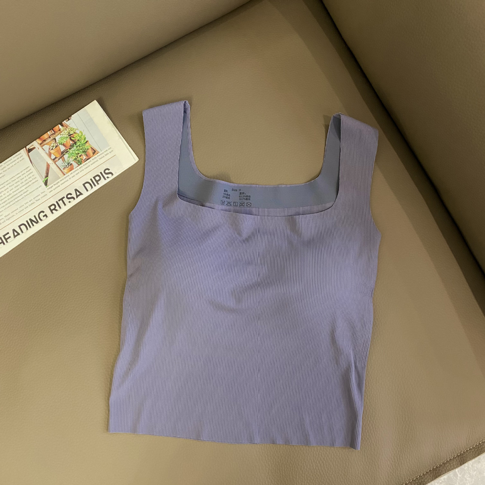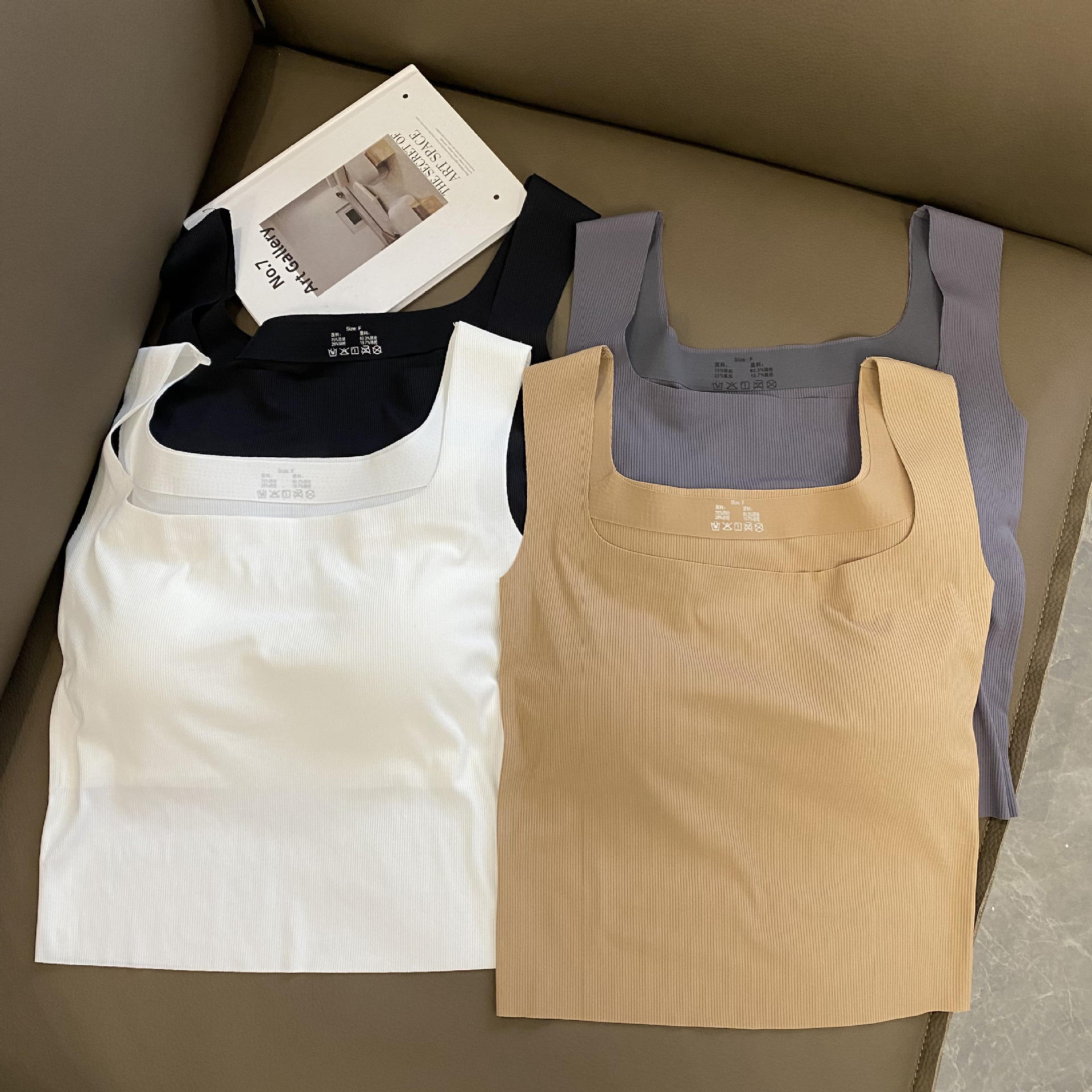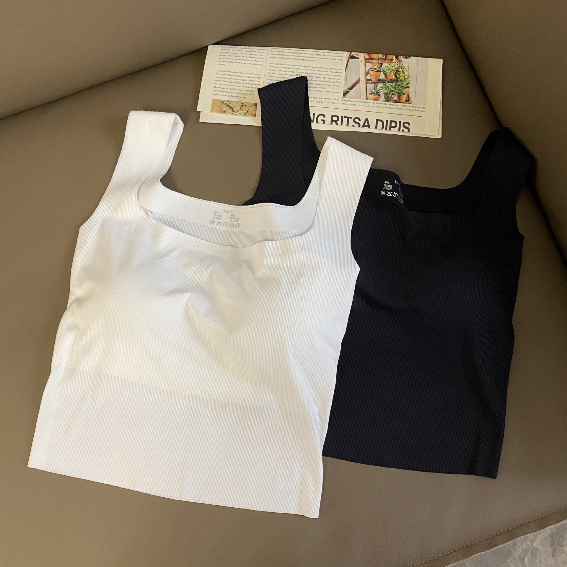 새로운 복고풍 여름 아이스 실크 캐미솔 여성용 민소매 와이드 숄더 스퀘어 칼라 슬림 핏 내복, 가슴 패드 바닥 탑