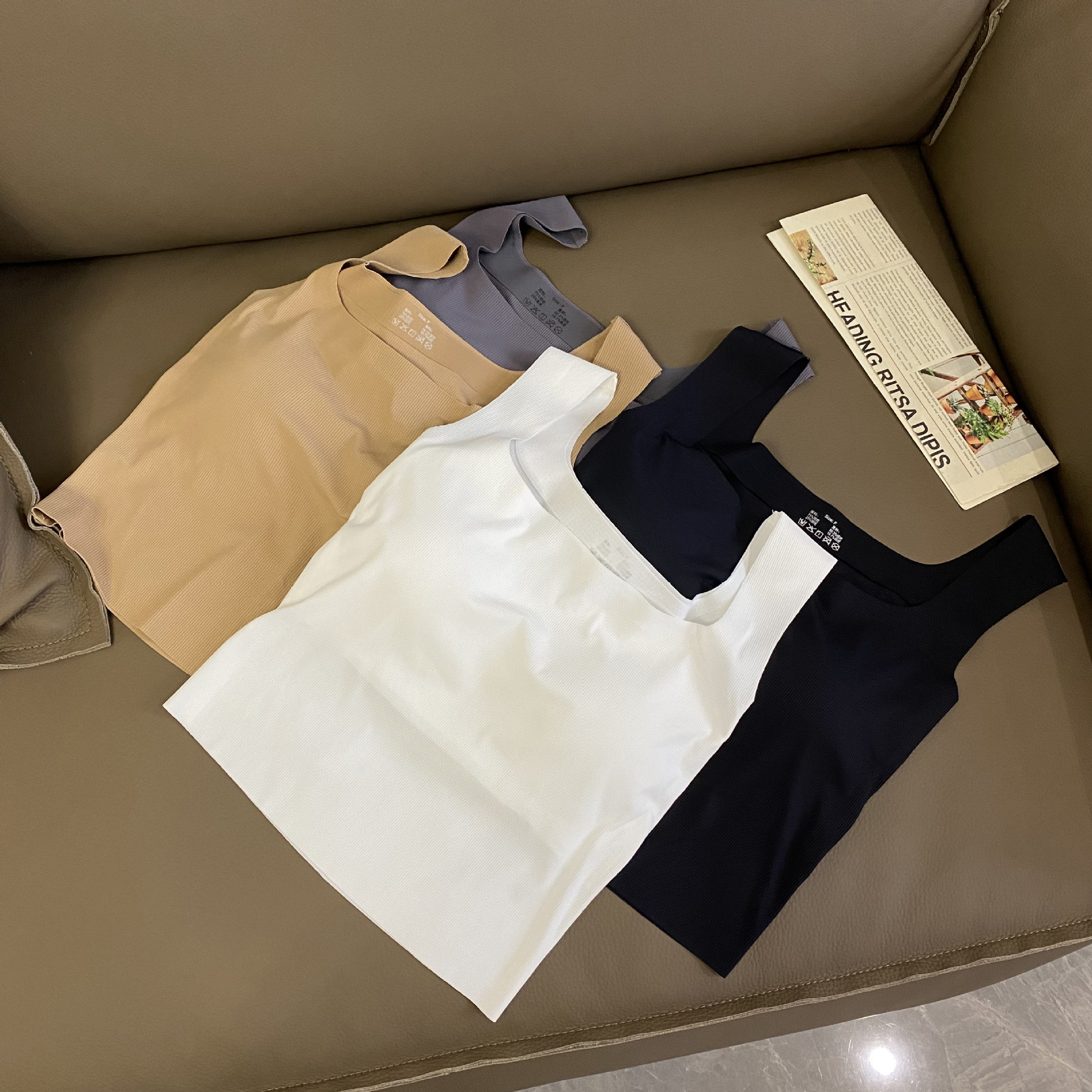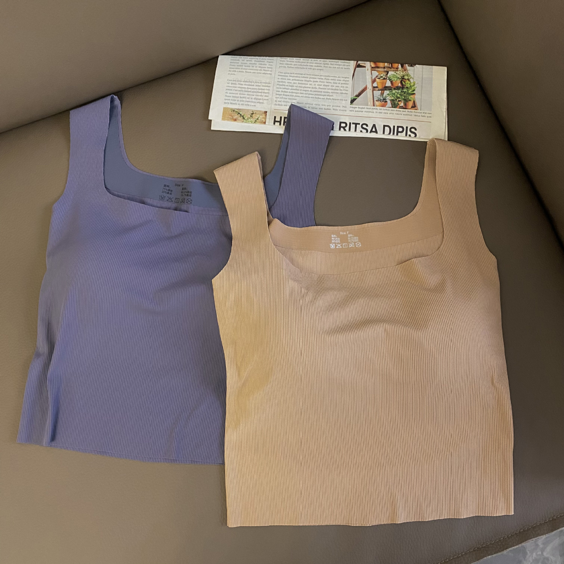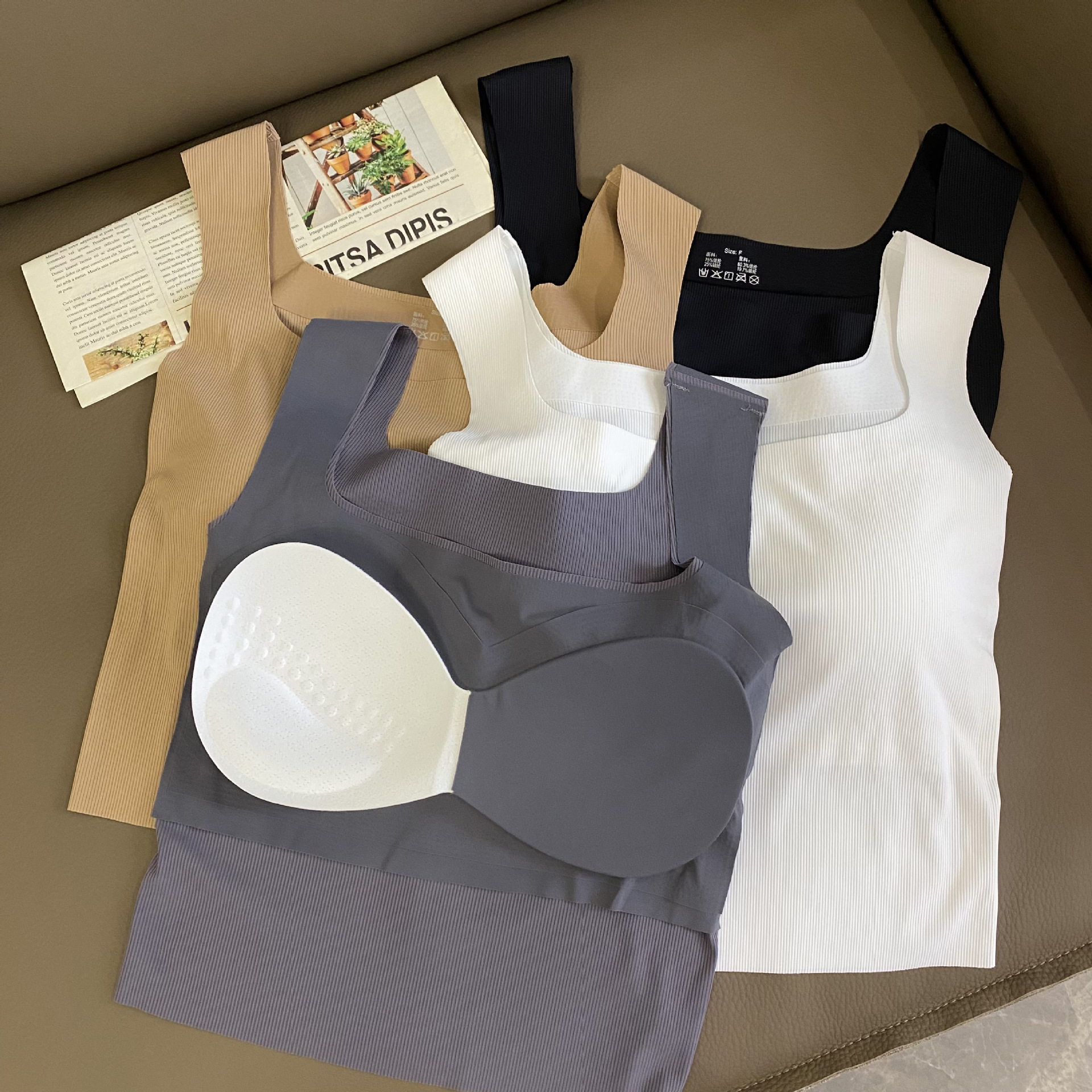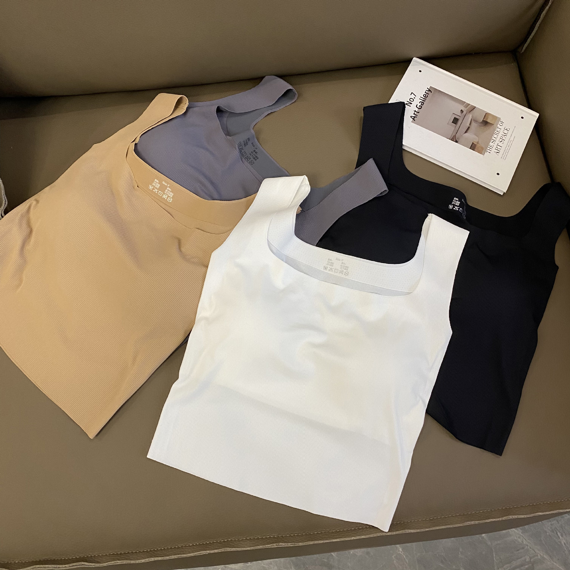 새로운 복고풍 여름 아이스 실크 캐미솔 여성용 민소매 와이드 숄더 스퀘어 칼라 슬림 핏 내복, 가슴 패드 바닥 탑