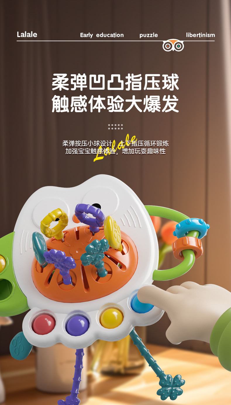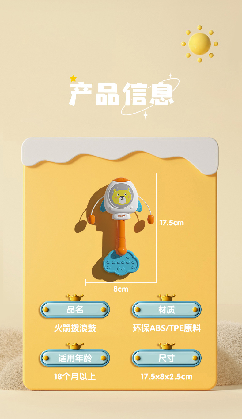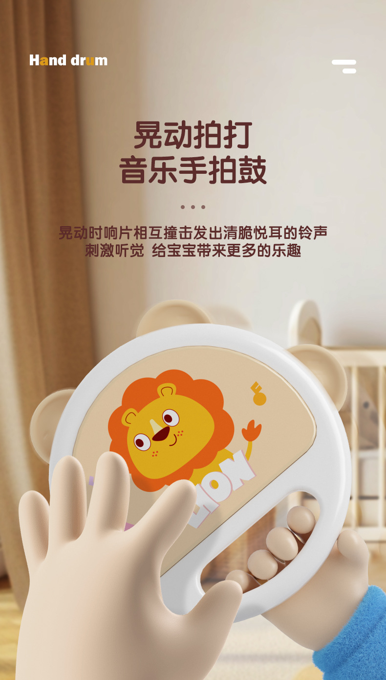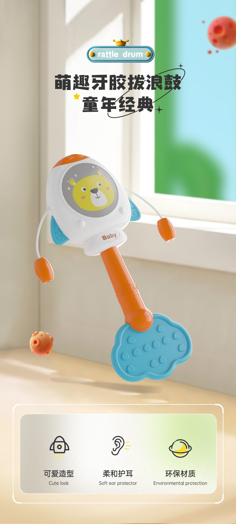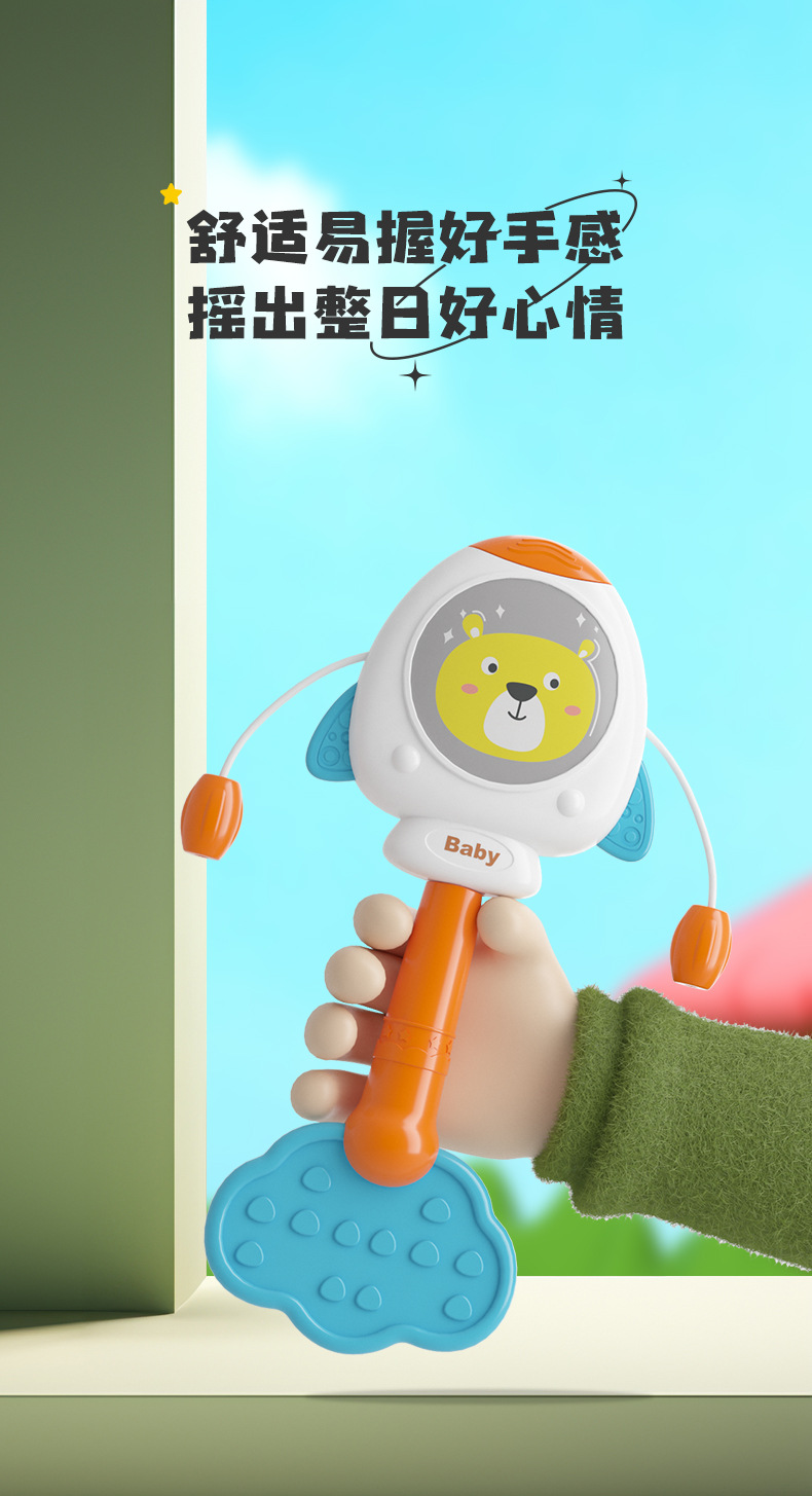 아기 조기 교육 장난감, 씹을 수 있는 치발기, 진정 딸랑이, 교육용 아기 손 드럼, 신생아 딸랑이 0-1스토어 가기