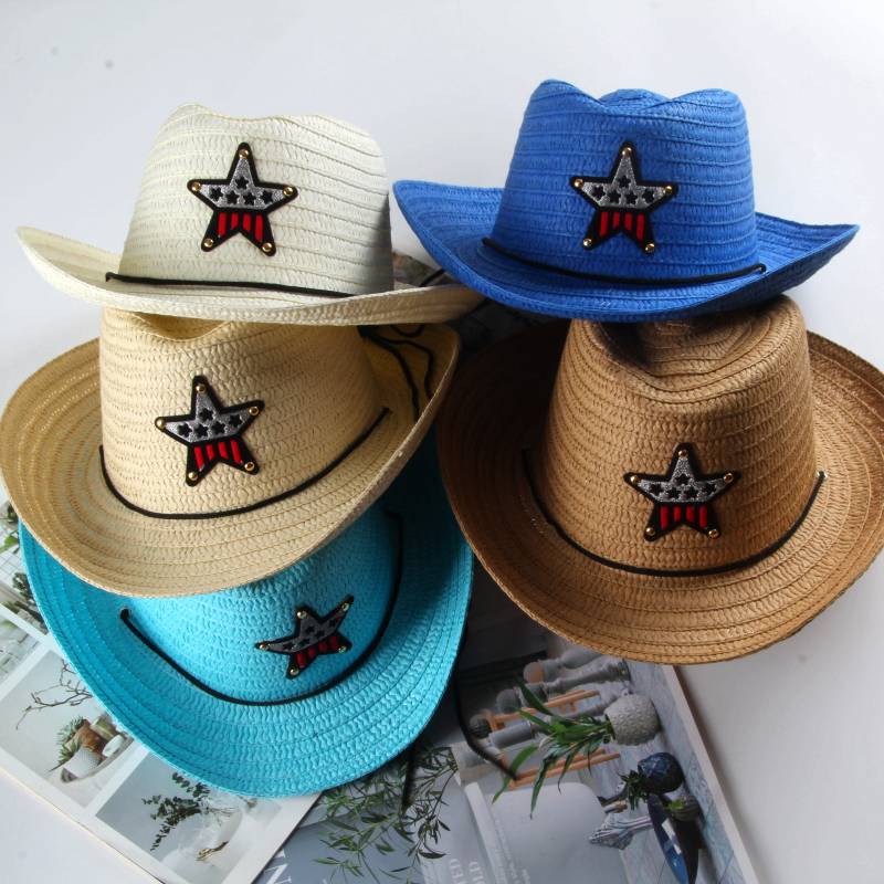 어린이 모자 남자 태양 보호 태양 모자 서양 데님 아기 밀짚 모자 다섯개 별 소년 모자 어부 모자 도매스토어 가기