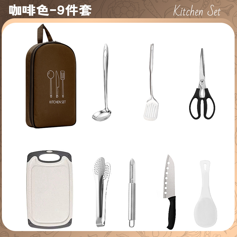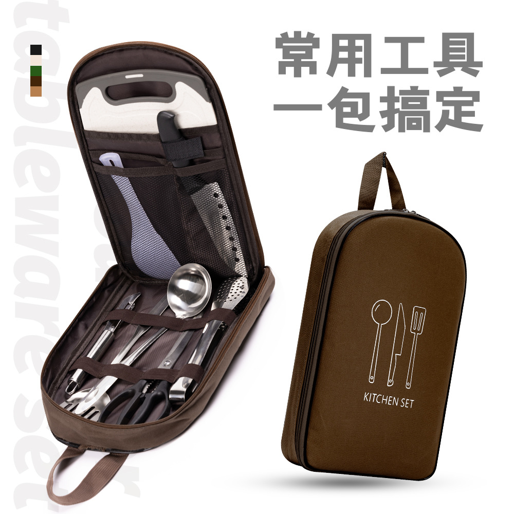 • 다크 브라운 식기 가방 9 피스 세트 키트 세트