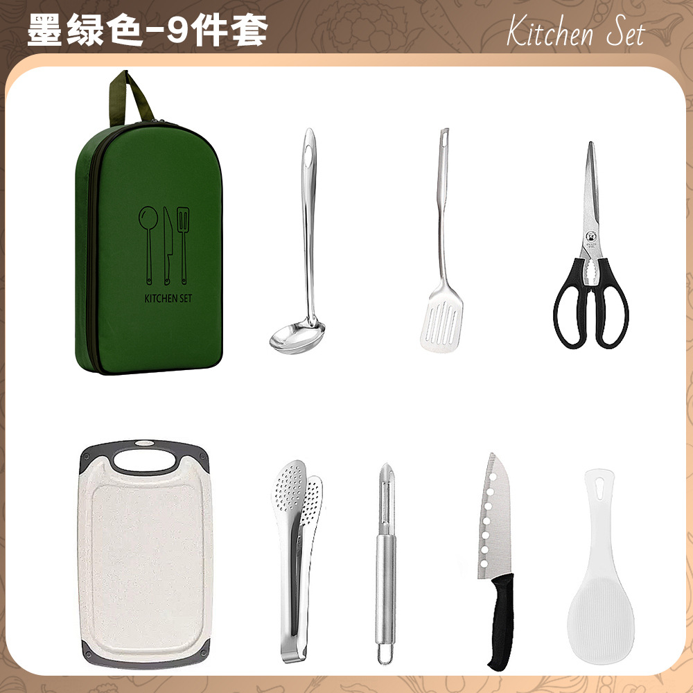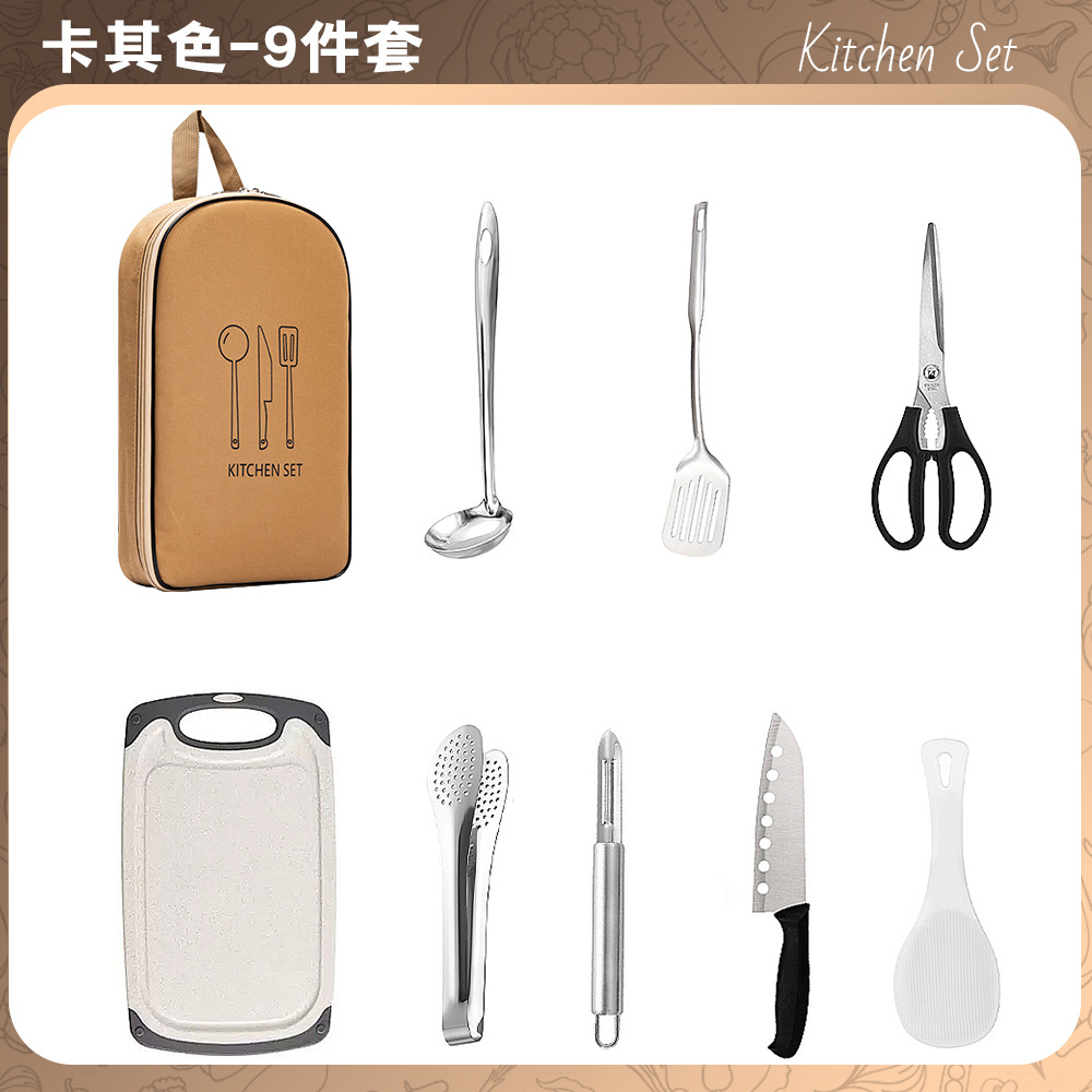• 카키 식기 가방 9 피스 세트 키트 세트