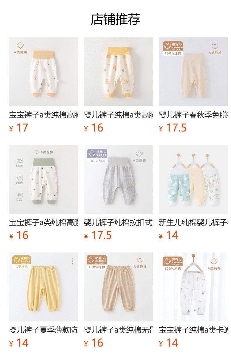 아기 바지 순면 A급 무봉제 봄가을 신생아 긴바지 남아 여아 아기 하이웨이스트 배 보호 긴바지스토어 가기