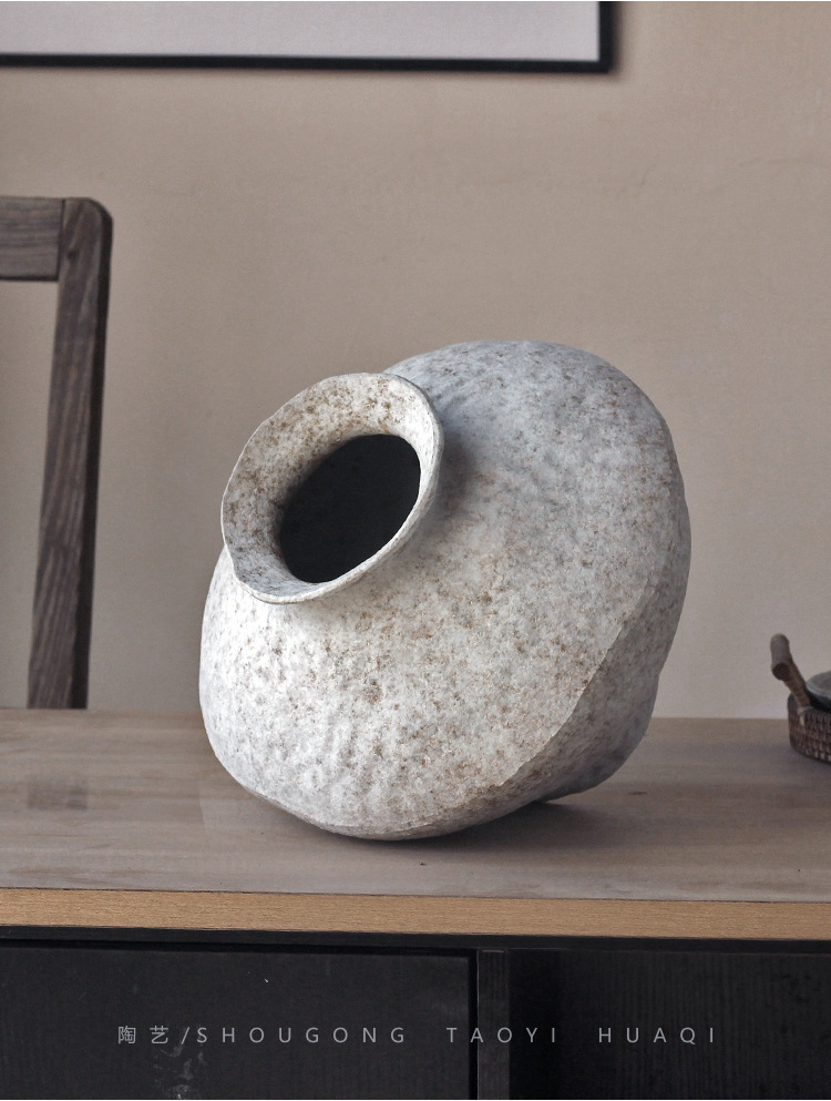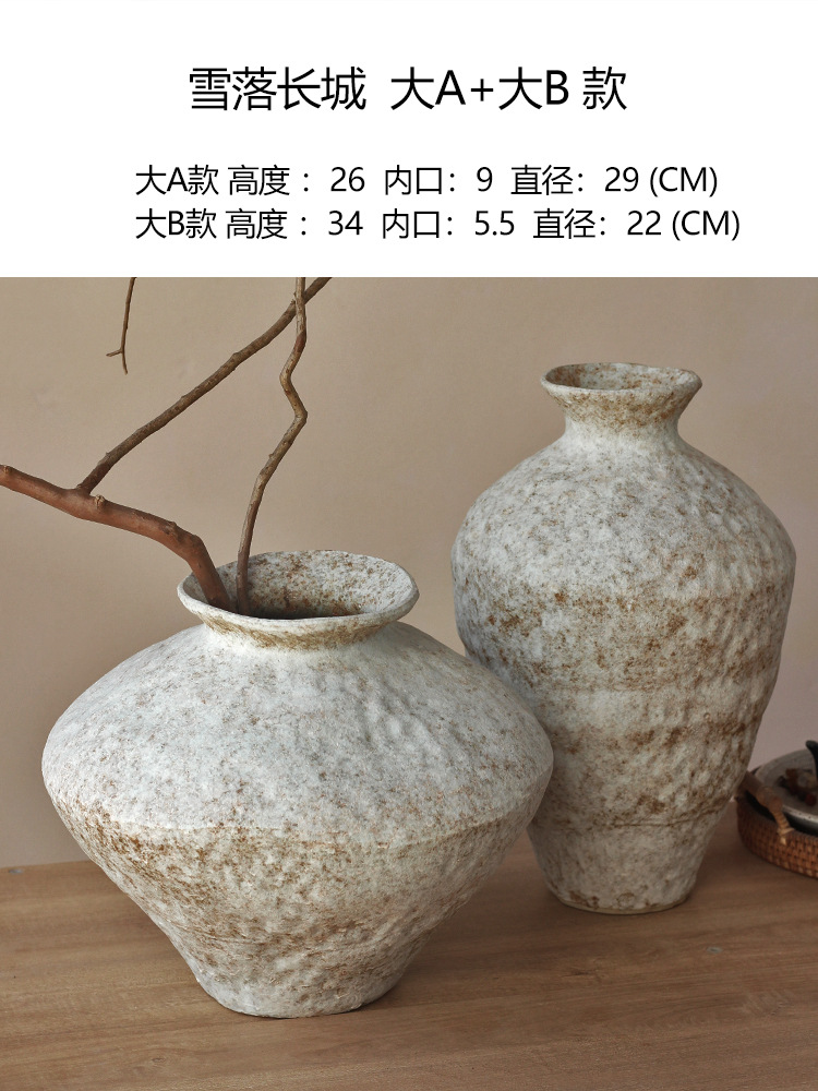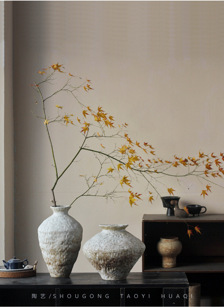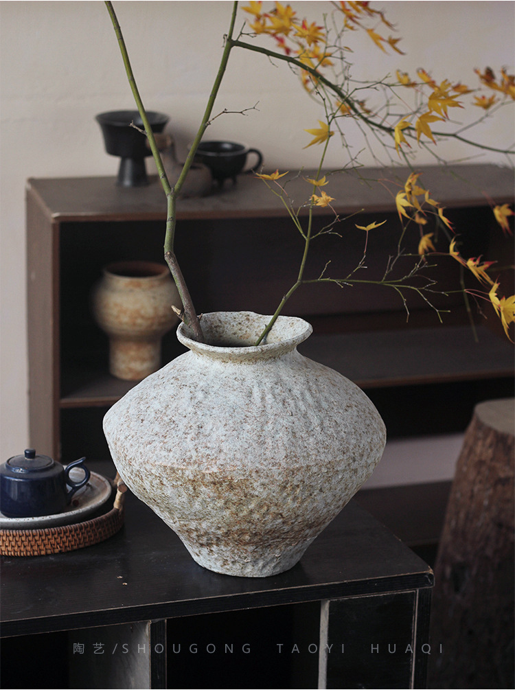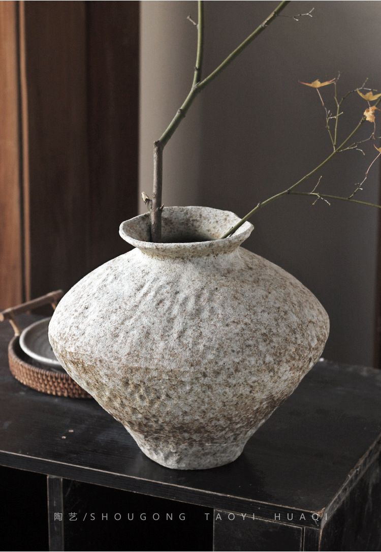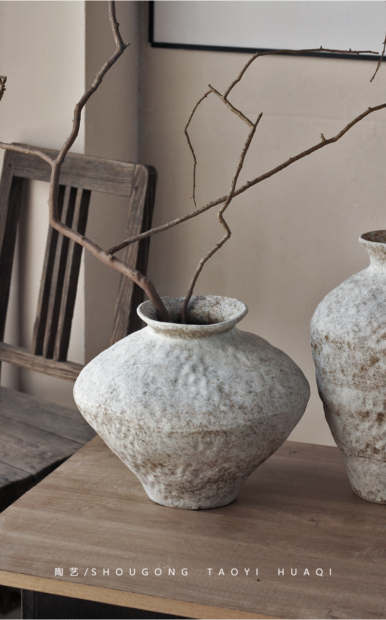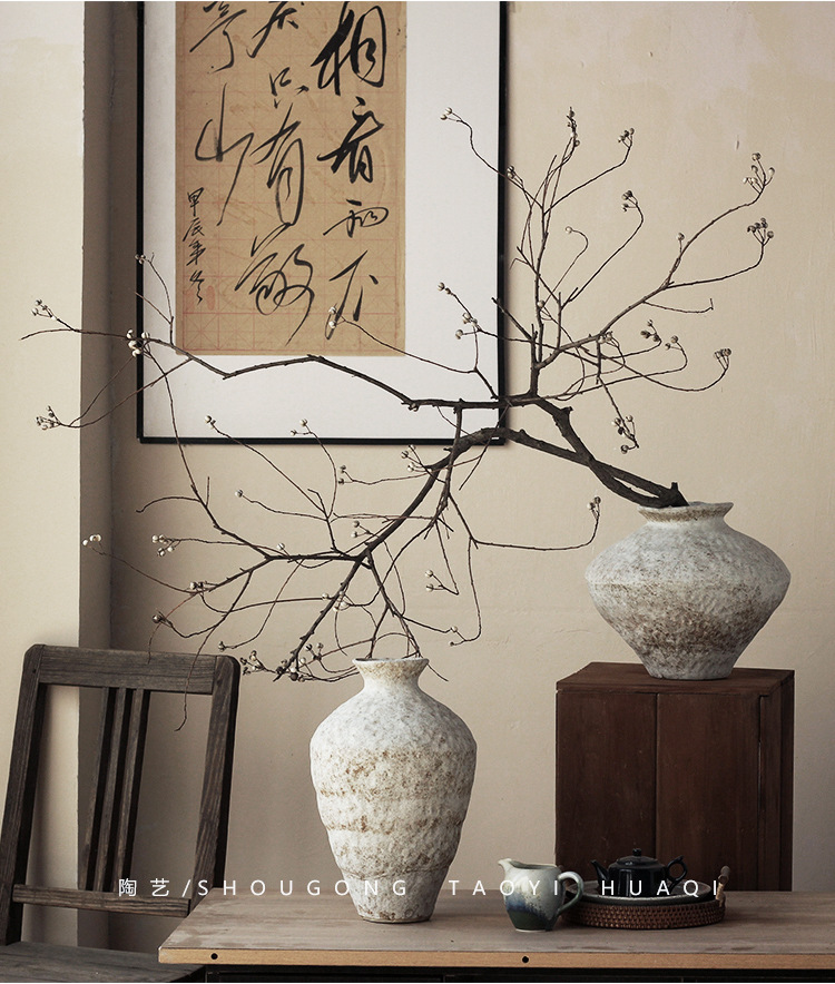 Jingdezhen 빈티지 세라믹 꽃병 조용한 스타일의 거친 도자기 냄비 새로운 중국 수제 침대 및 아침 식사 장식 선 고대 간단한 호텔