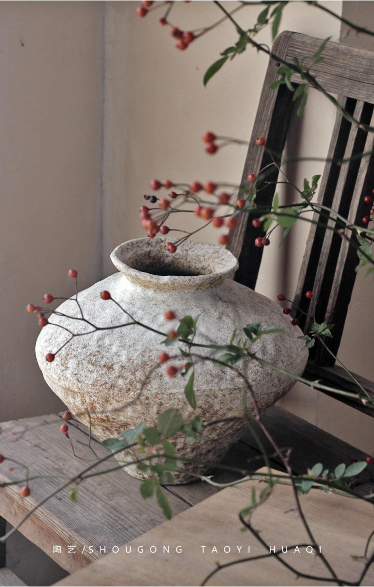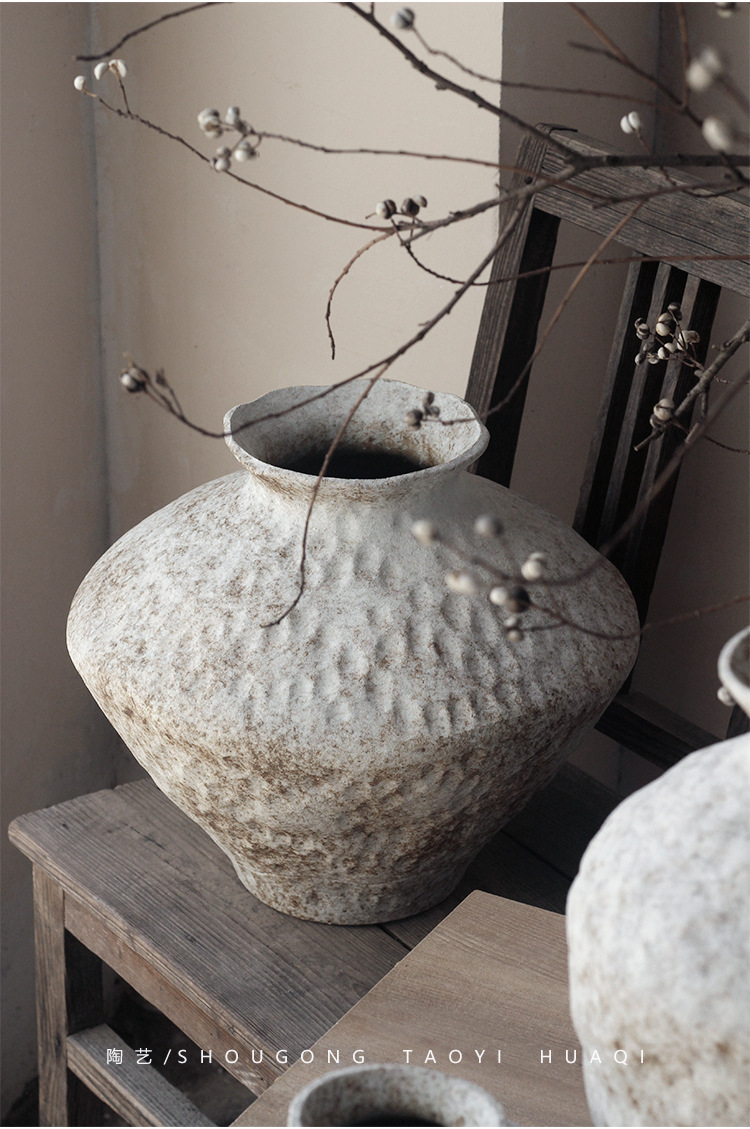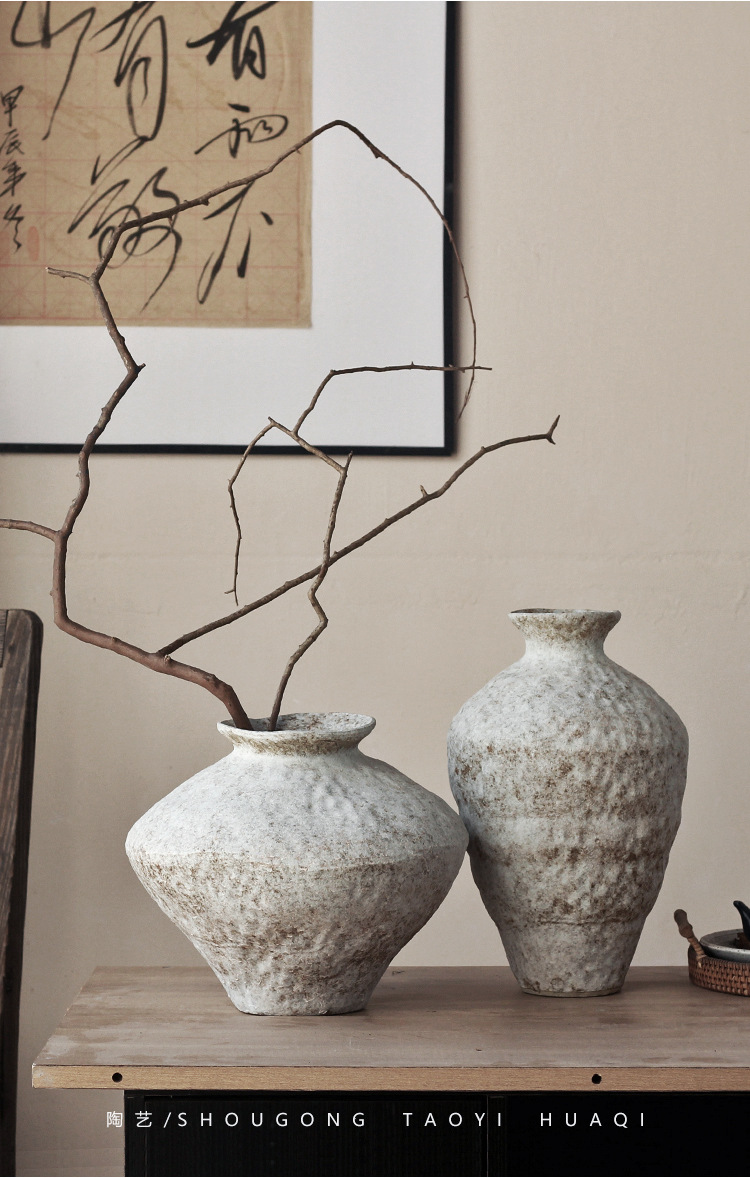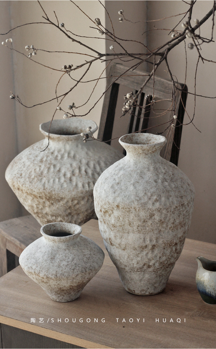 Jingdezhen 빈티지 세라믹 꽃병 조용한 스타일의 거친 도자기 냄비 새로운 중국 수제 침대 및 아침 식사 장식 선 고대 간단한 호텔스토어 가기