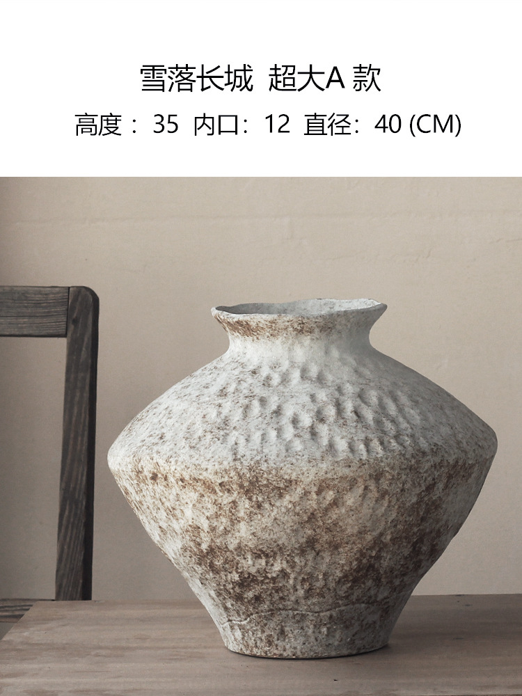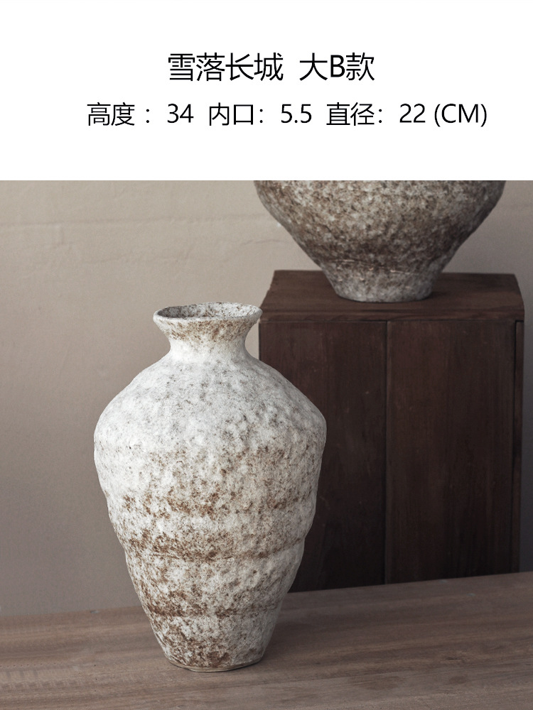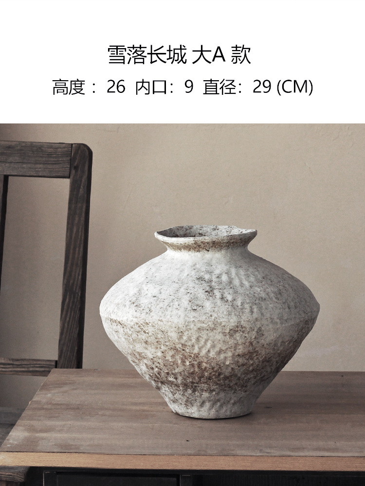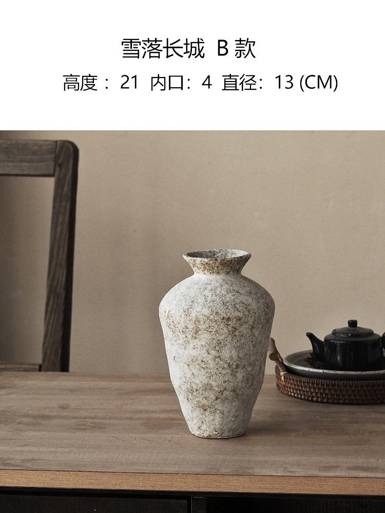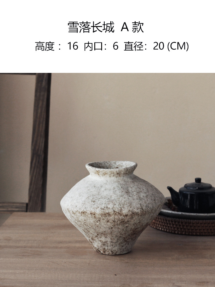 Jingdezhen 빈티지 세라믹 꽃병 조용한 스타일의 거친 도자기 냄비 새로운 중국 수제 침대 및 아침 식사 장식 선 고대 간단한 호텔스토어 가기
