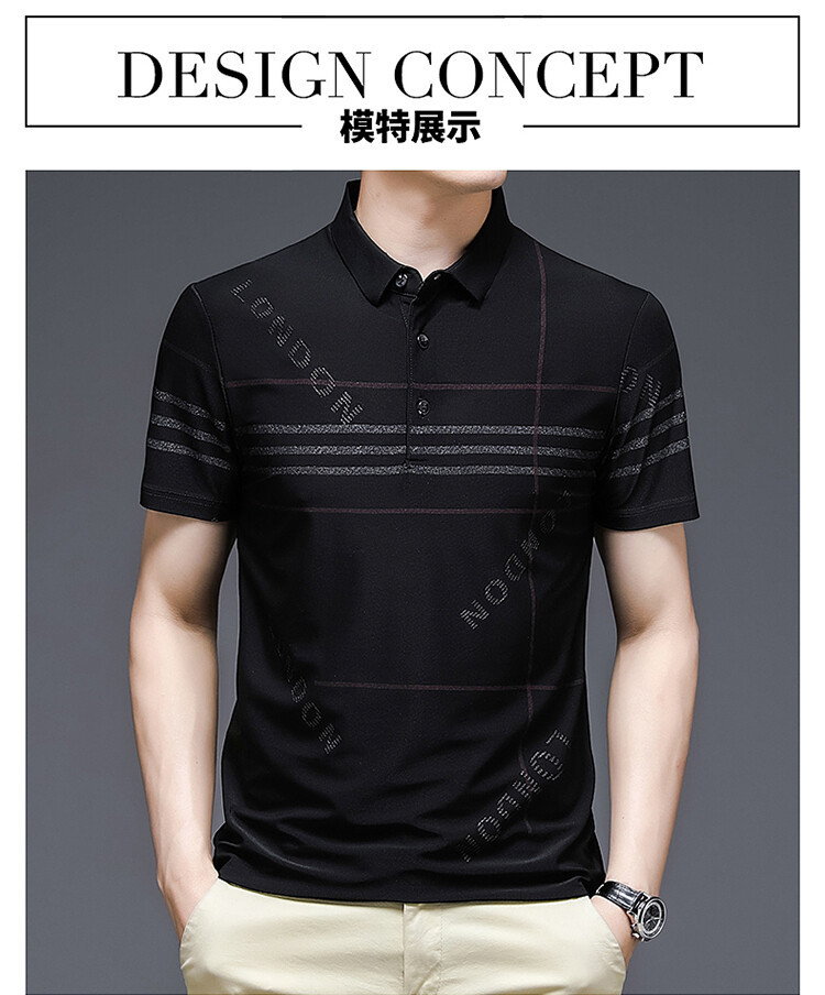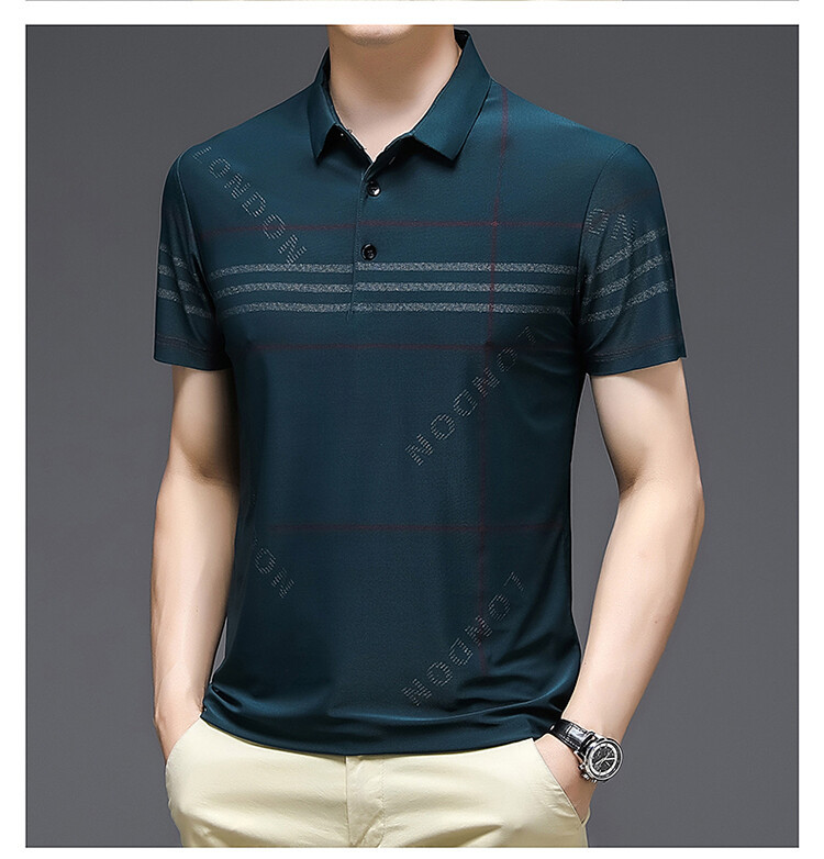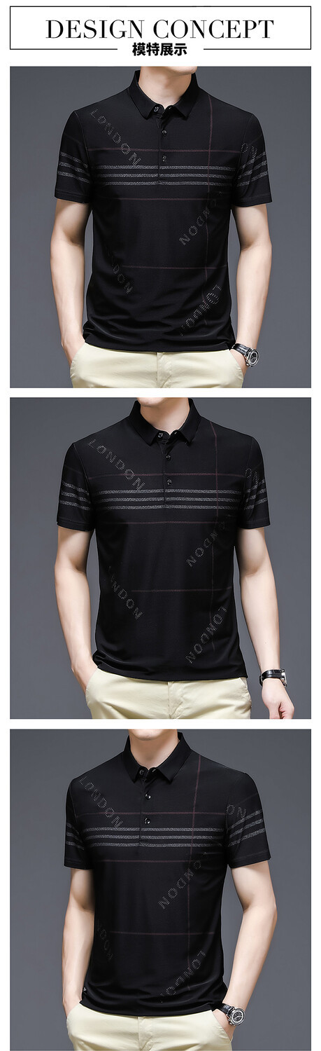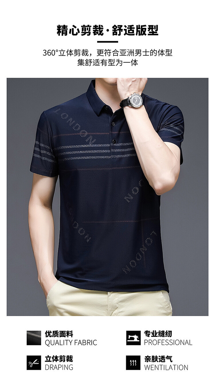 중년 및 노인 아빠 아이스 실크 옷깃 반팔 티셔츠 남성용 자카드 비즈니스 캐주얼 반소매 아빠는 얇은 폴로를 착용합니다.
