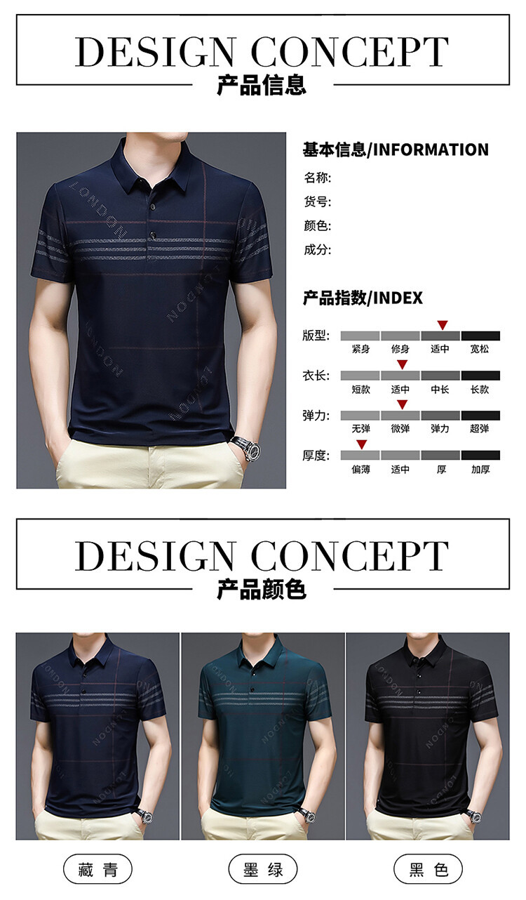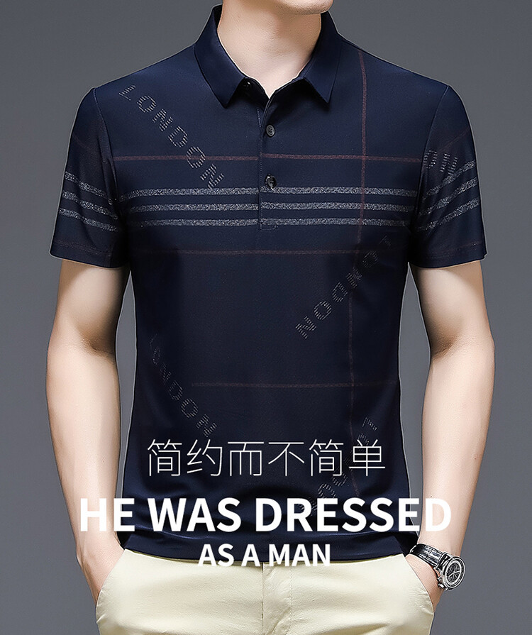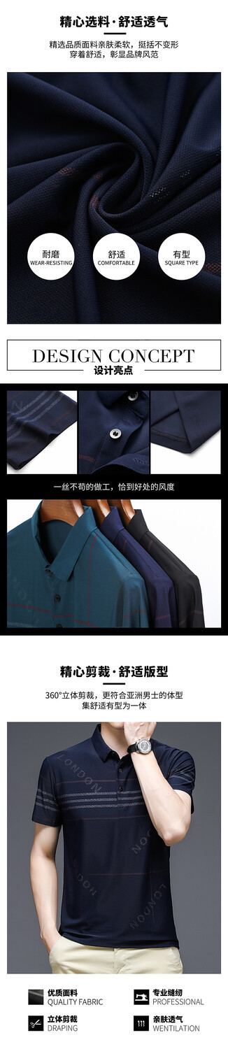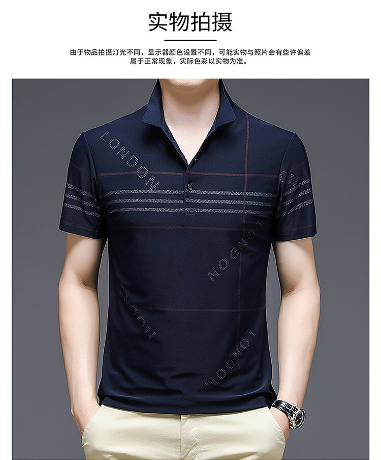 중년 및 노인 아빠 아이스 실크 옷깃 반팔 티셔츠 남성용 자카드 비즈니스 캐주얼 반소매 아빠는 얇은 폴로를 착용합니다.스토어 가기