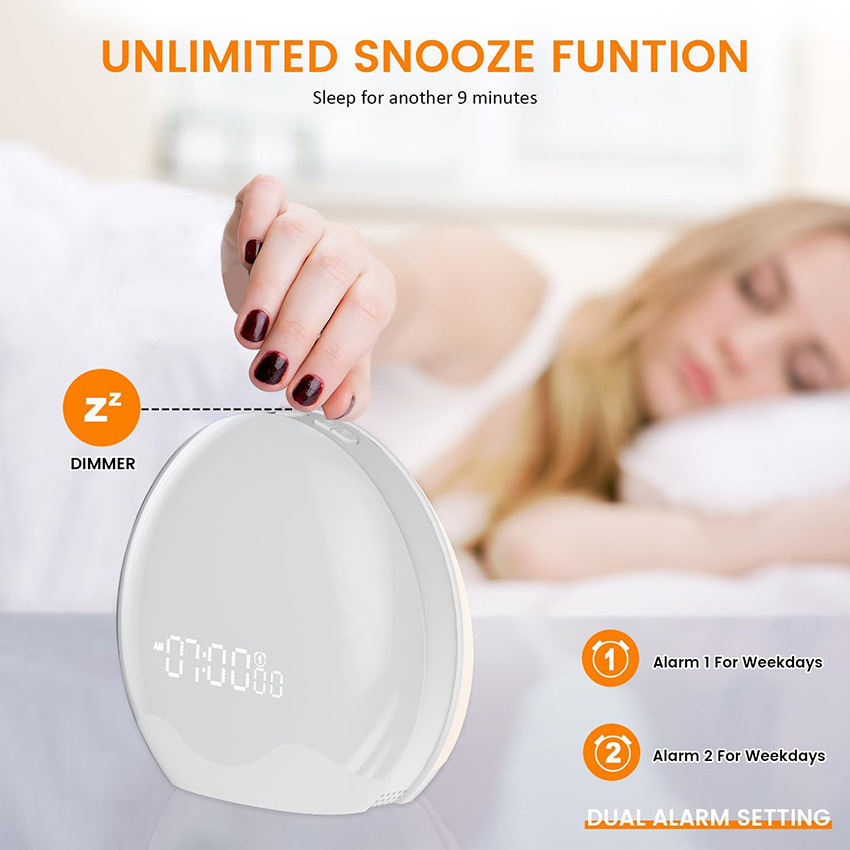 1)可设置时间12h或24h显示模式、双闹钟、FM收音机功能、贪睡功能