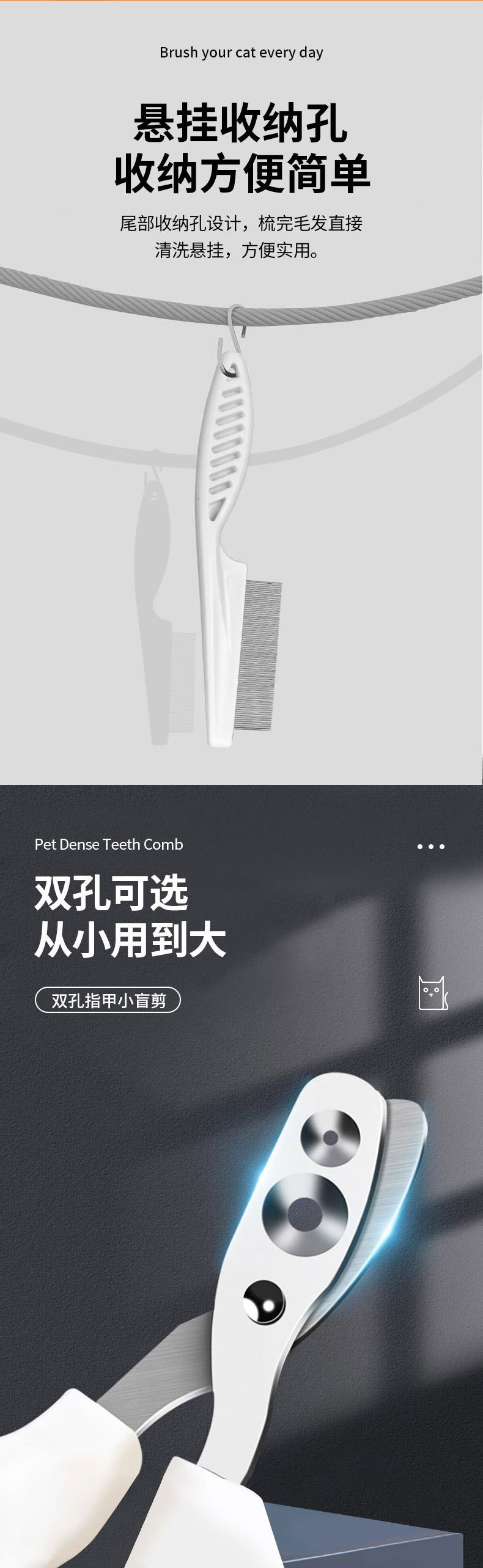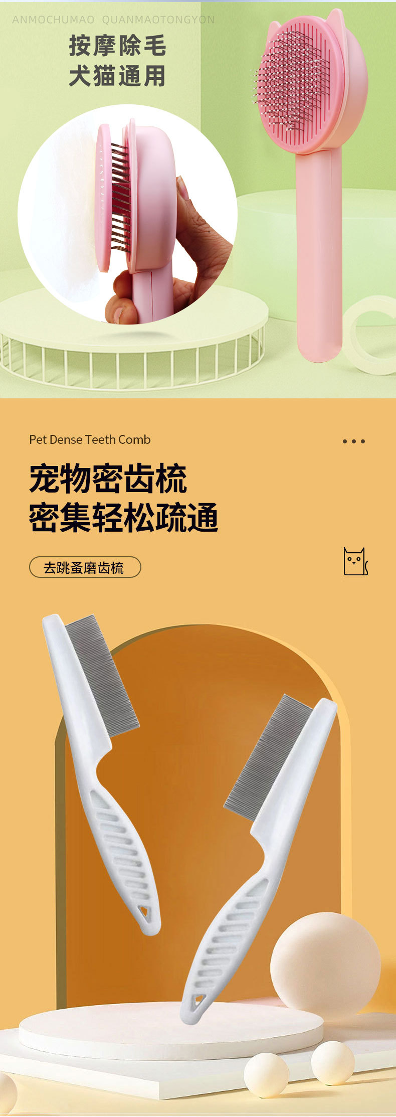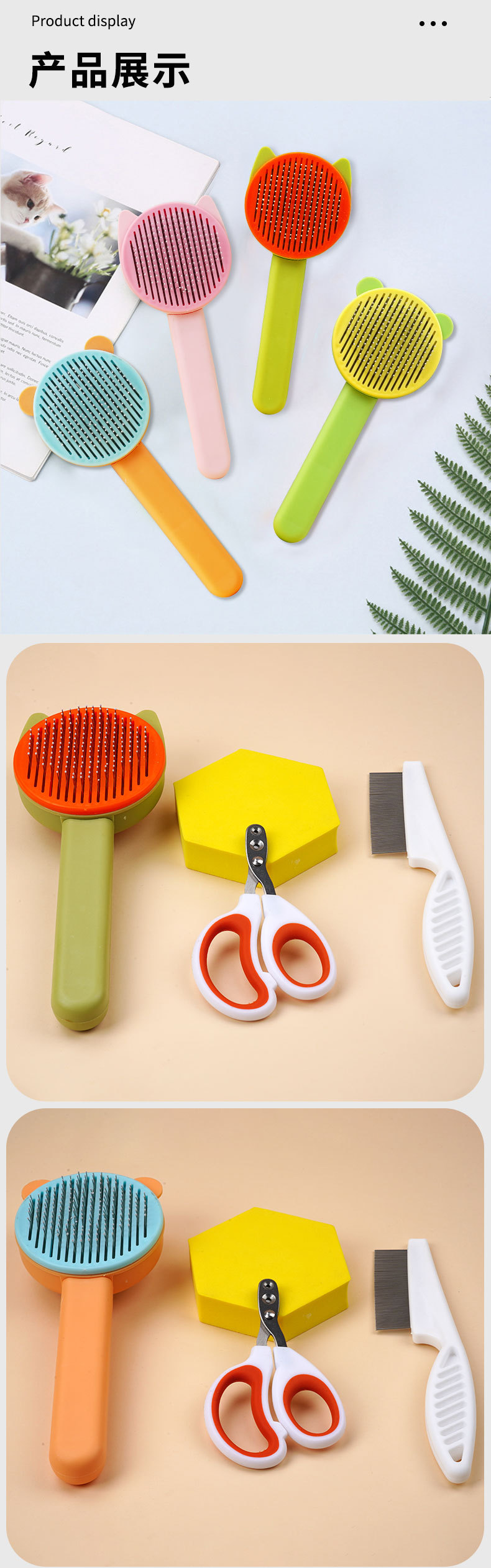 고양이 세 조각 애완 동물 빗 고양이 머리 빗 개 머리 제거 브러시 고양이 머리 제거 유물 고양이 빗스토어 가기