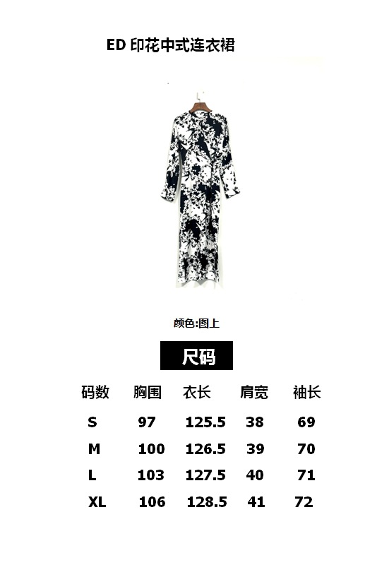 【특가】ED 기쁨을 넘치는 중국풍 프린트 원피스, 우아한 허리라인, 휴가 스타일 롱 드레스