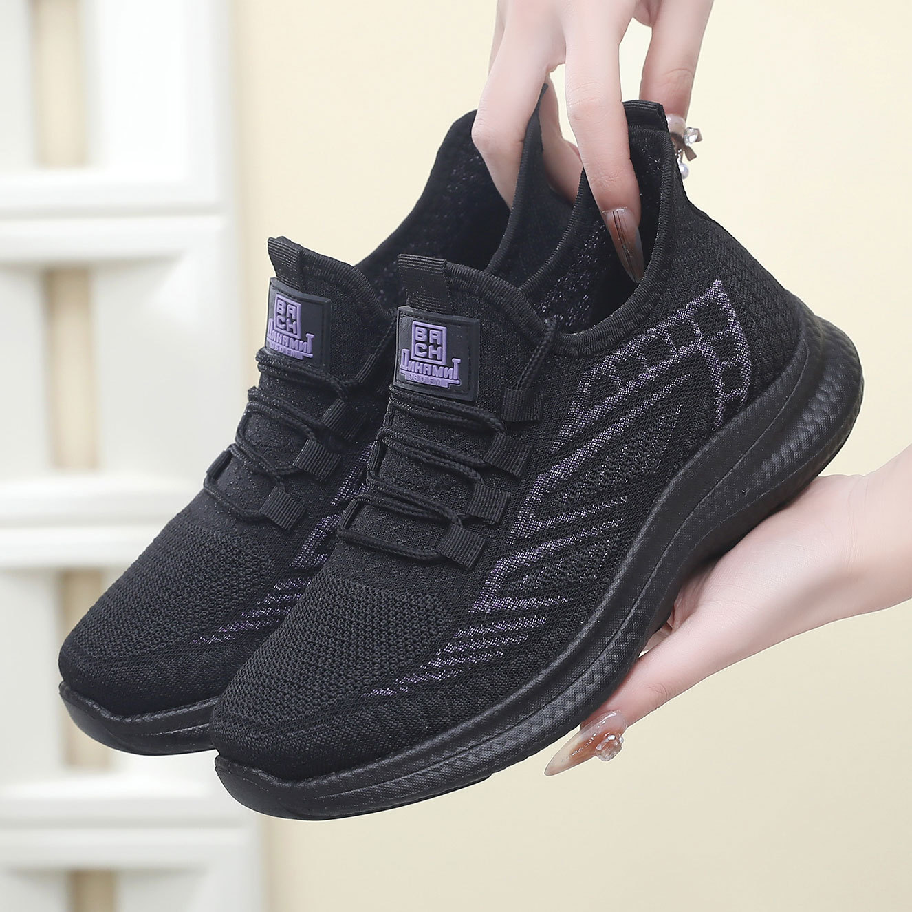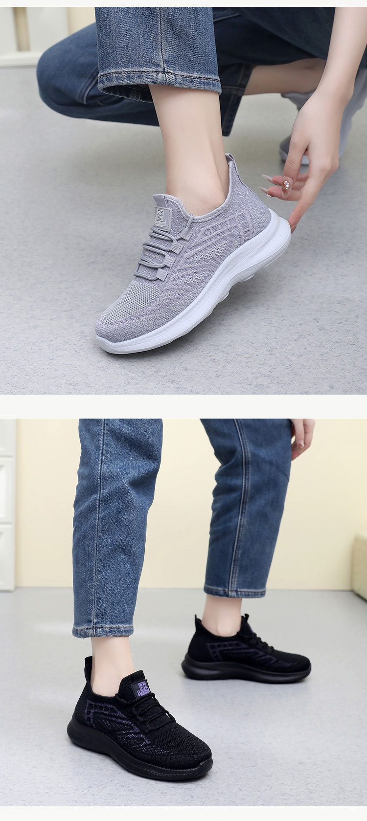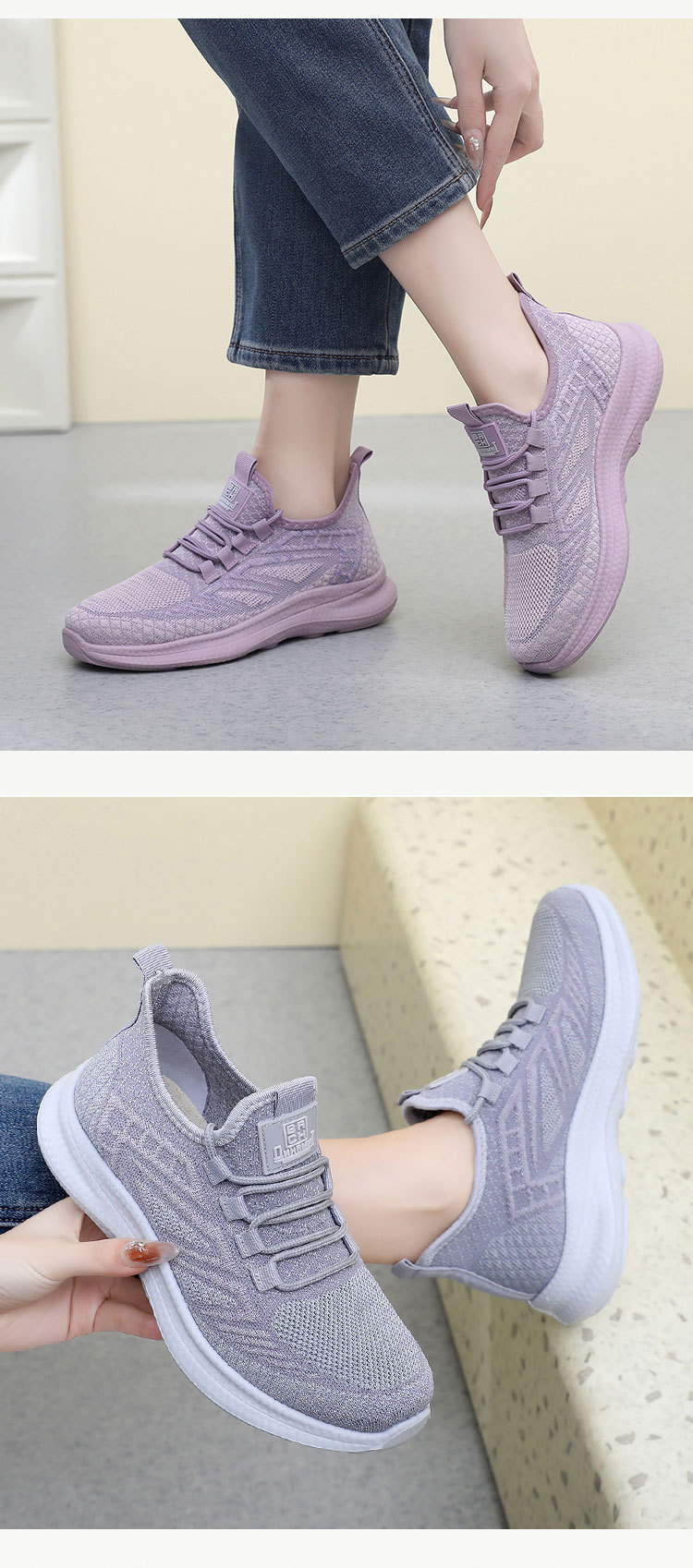 운동화 여성 2024 봄과 여름 새로운 여성 비행 짠 부드러운 바닥 경량 운동화 통기성 미끄럼 방지 편안한 싱글 레이어 신발스토어 가기