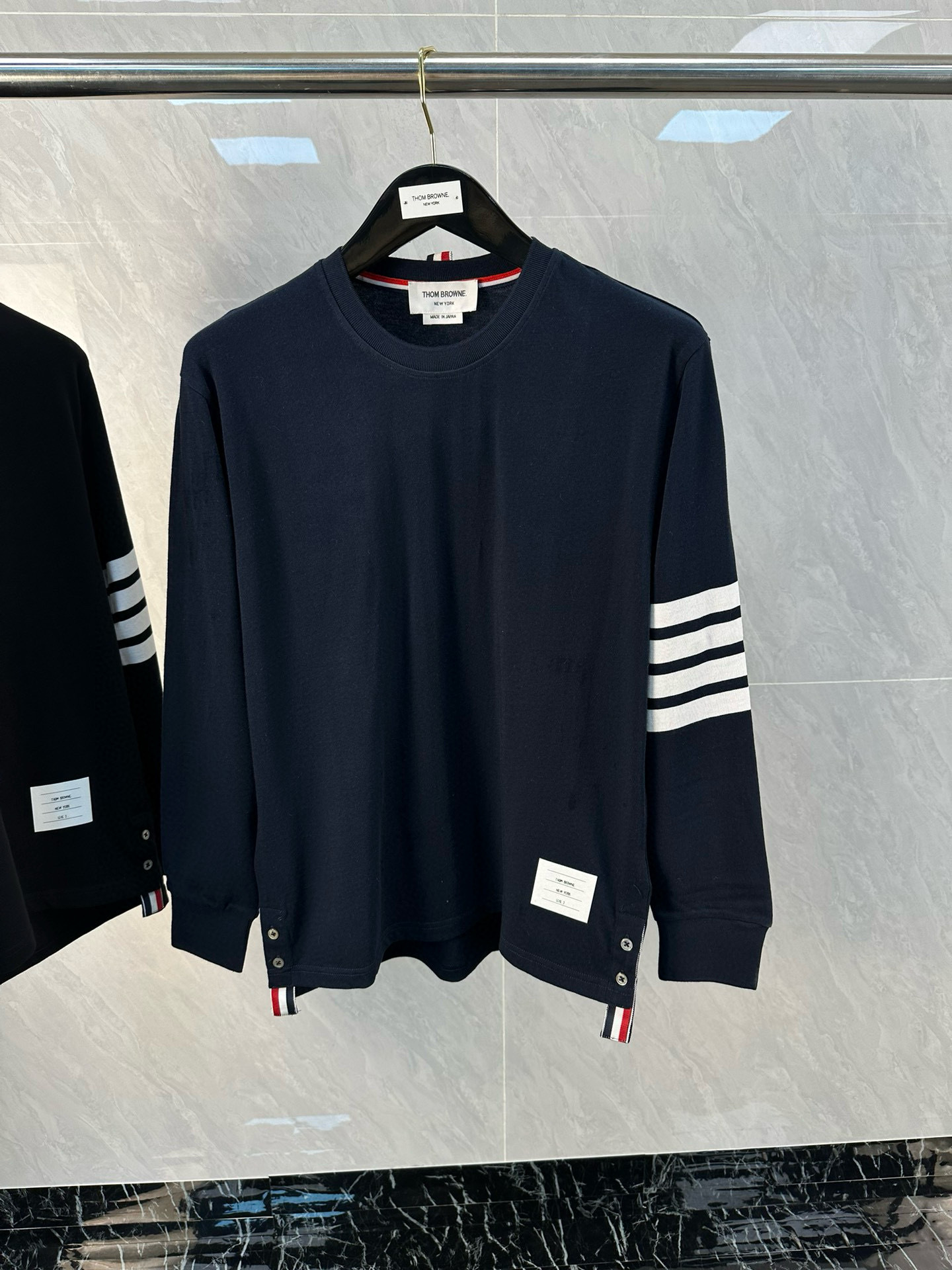 TB 남성 티셔츠 클래식 4 바 라운드 넥 풀오버 캐주얼 올 매치 탑 남성과 여성의 동일한 간단한 긴 소매 T스토어 가기