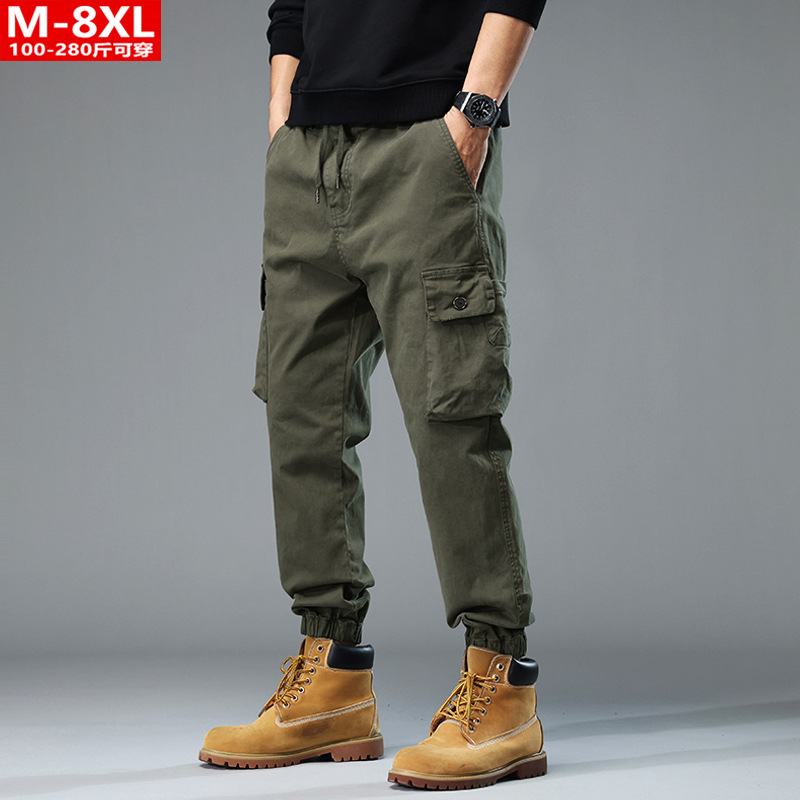 봄과 가을의 트렌디 한 품질 남성의 잘 생긴 세련된 발목 묶은 모든 어울리는 바지 뚱뚱한 플러스 사이즈 느슨한 캐주얼 바지
