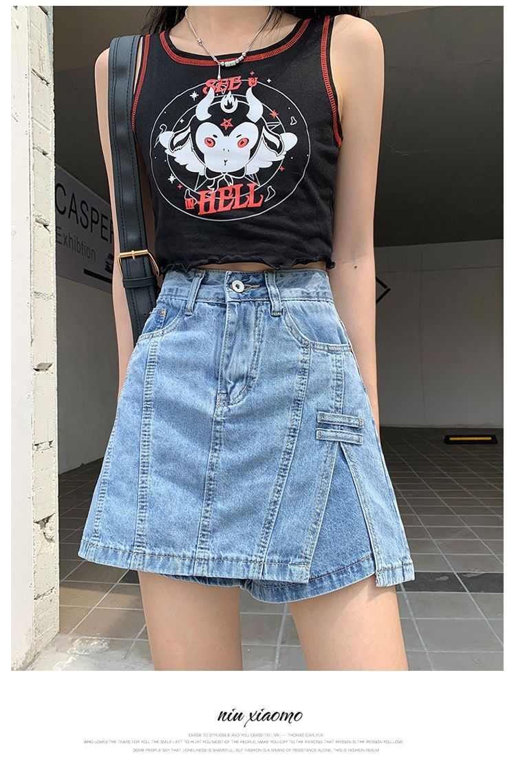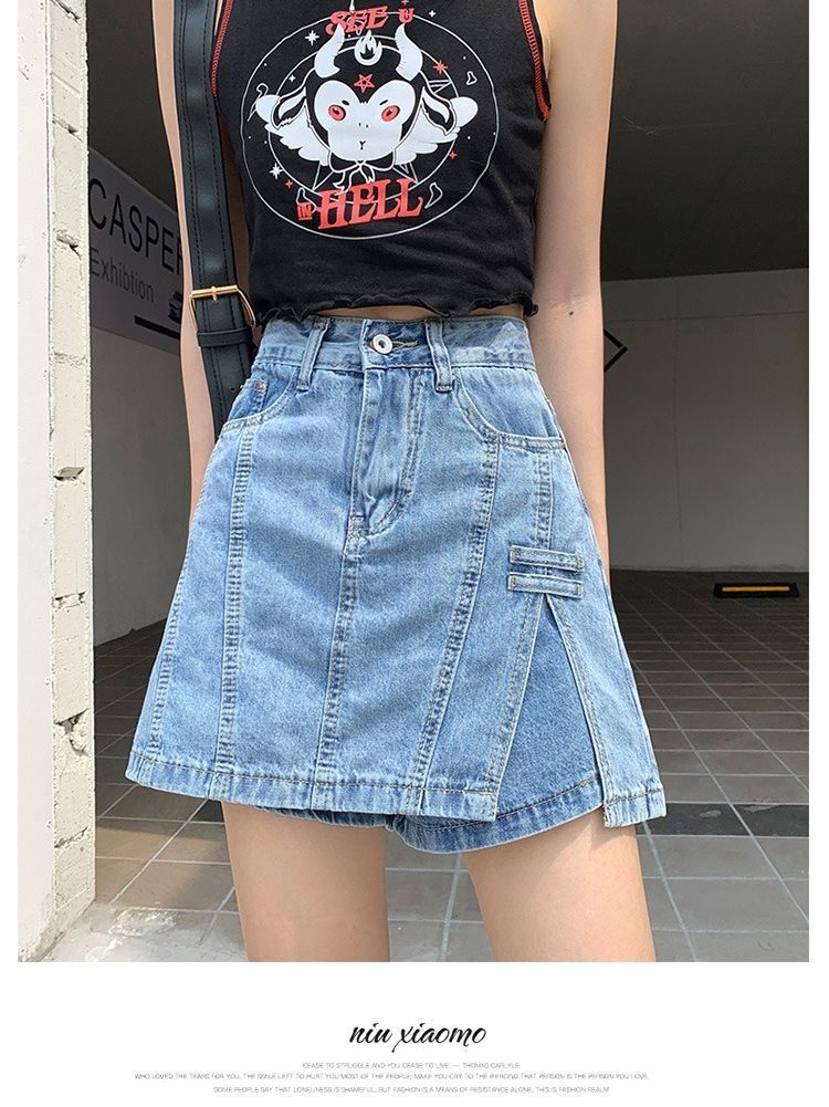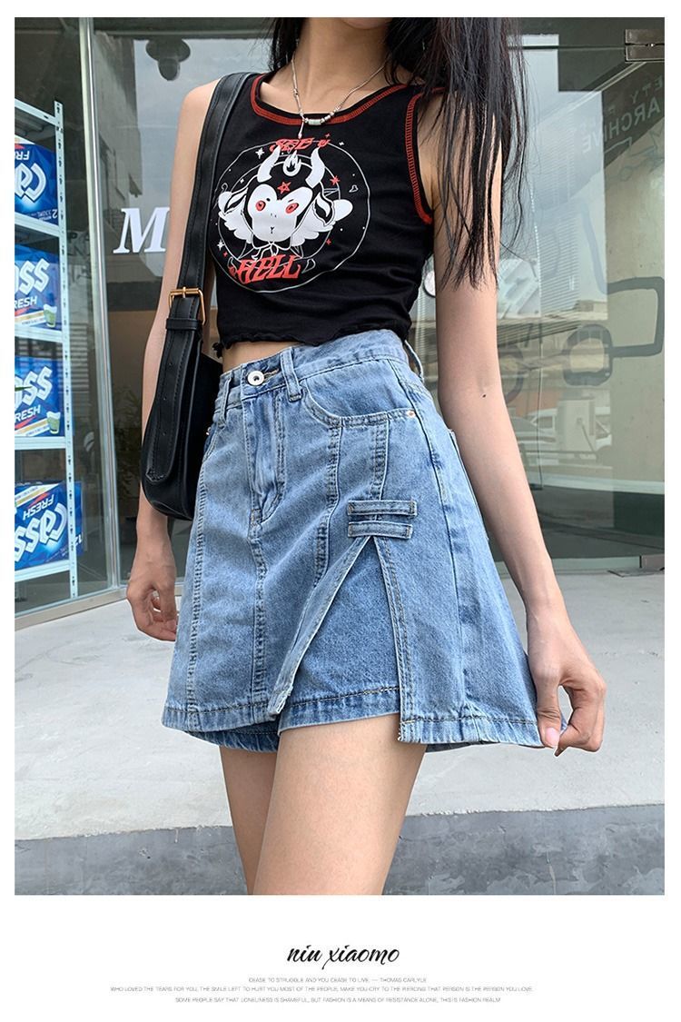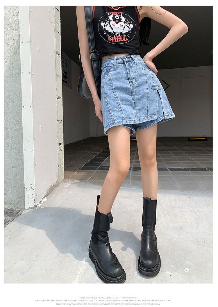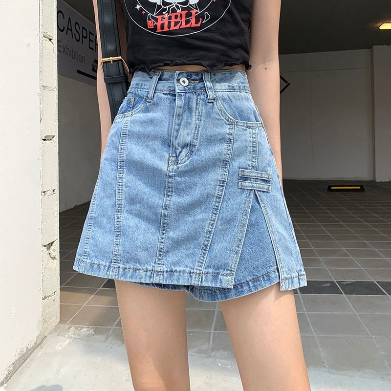높은 허리 플러스 사이즈 데님 짧은 치마 2024 여름 새로운 얇은 슬리밍 분할 엉덩이 치마 퀼로트스토어 가기