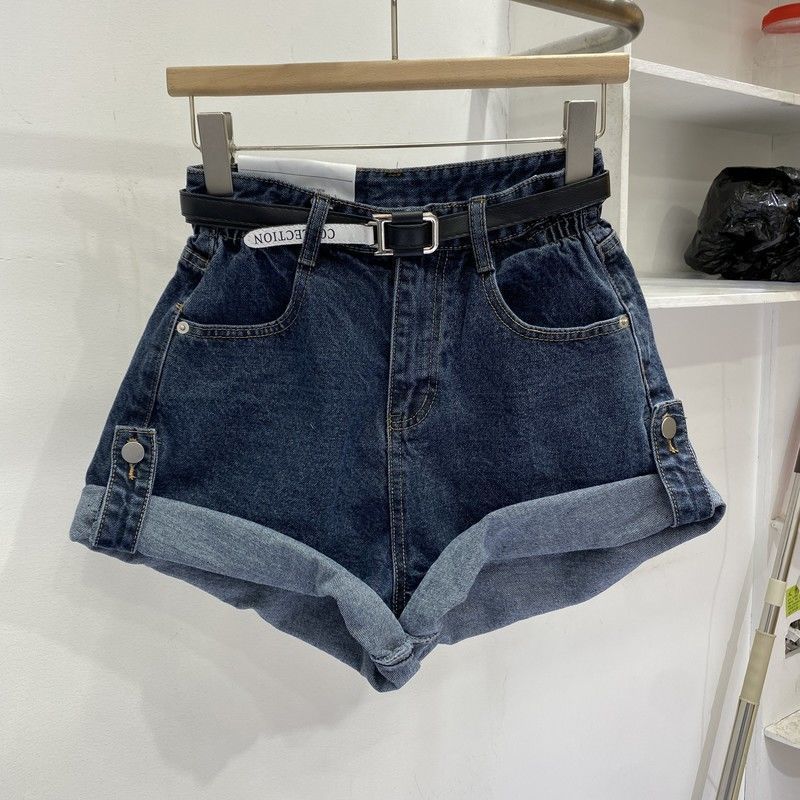 한국식 플러스 사이즈 데님 반바지 여성 2023 여름 새로운 홍콩 스타일 서양식 높은 허리 슬리밍 컬링 다용도 넓은 다리 바지스토어 가기