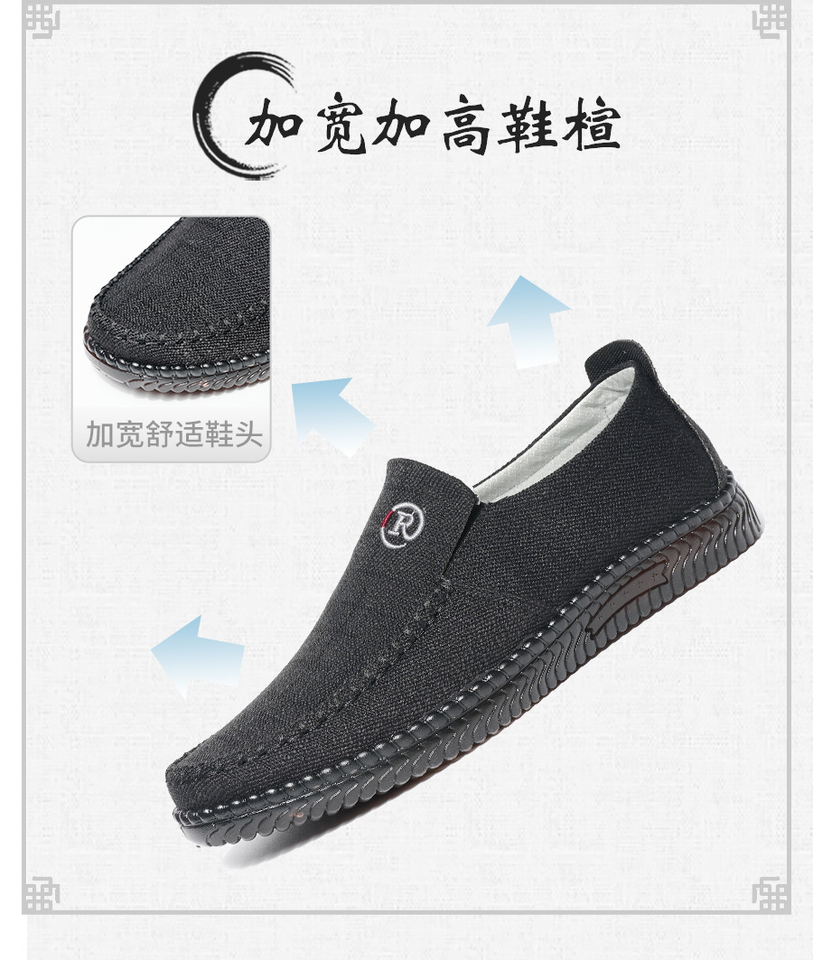 새로운 오래된 베이징 천 신발 경량 슬립 온 로퍼 봄 통기성 편안한 캐주얼 힘줄 바닥 캔버스 신발 남성용