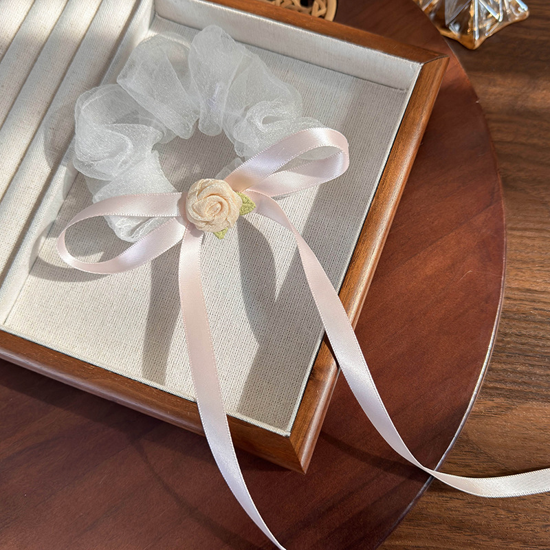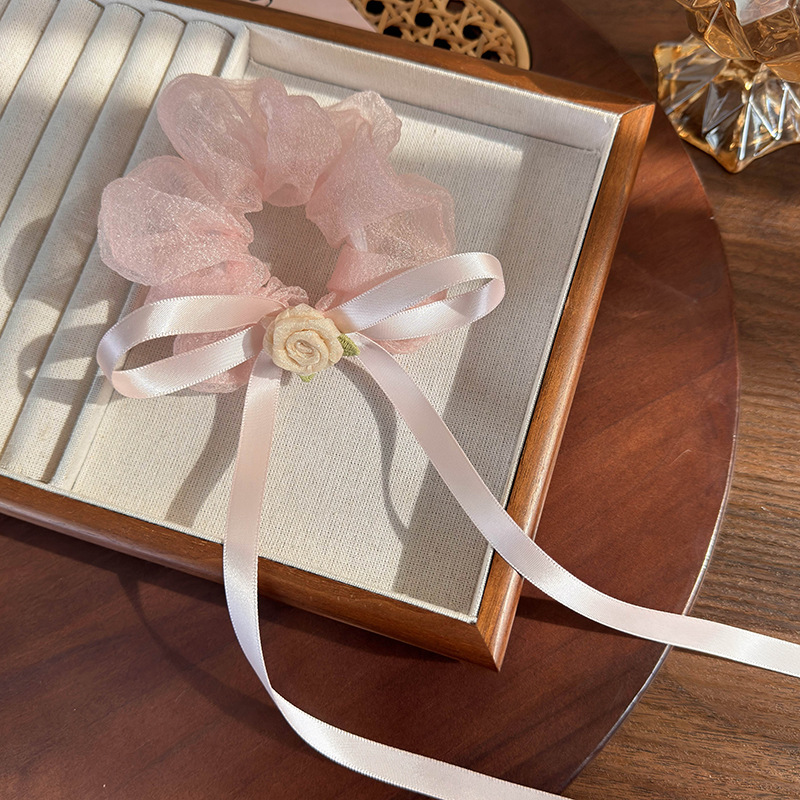 슈퍼 요정 장미 꽃 밧줄 메쉬 활 리본 머리 반지 유리 원사 큰 장 반지 머리 로프 모리 소녀스토어 가기