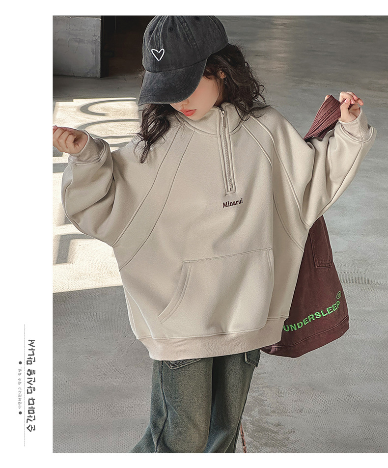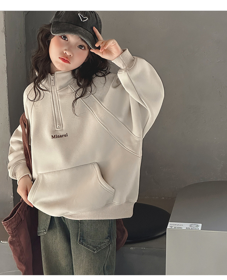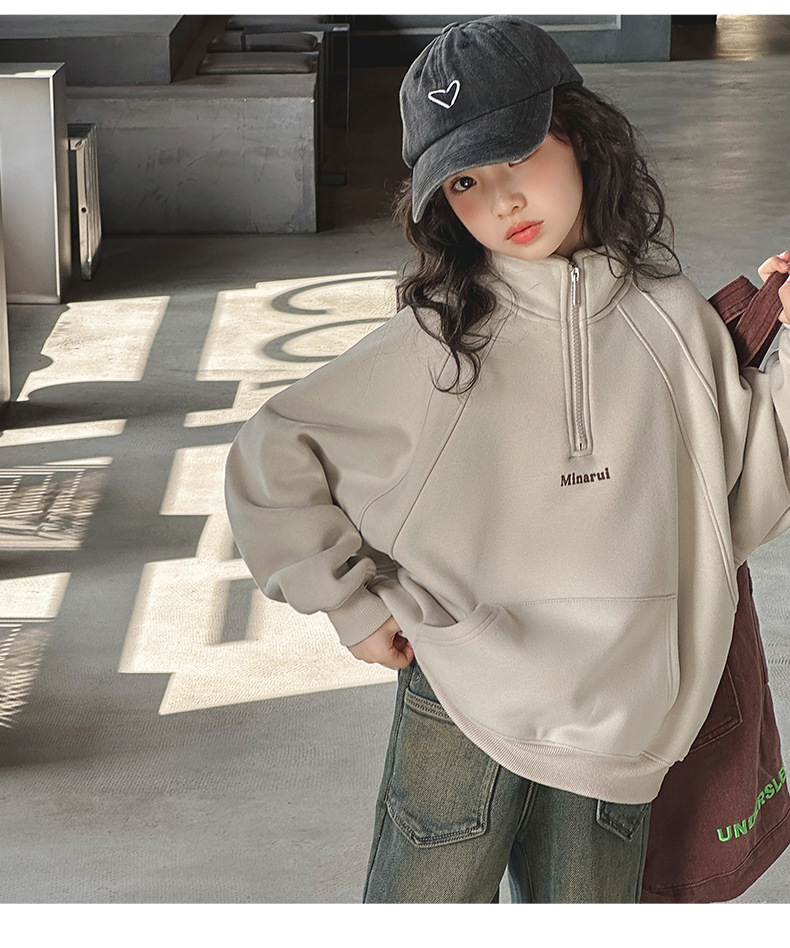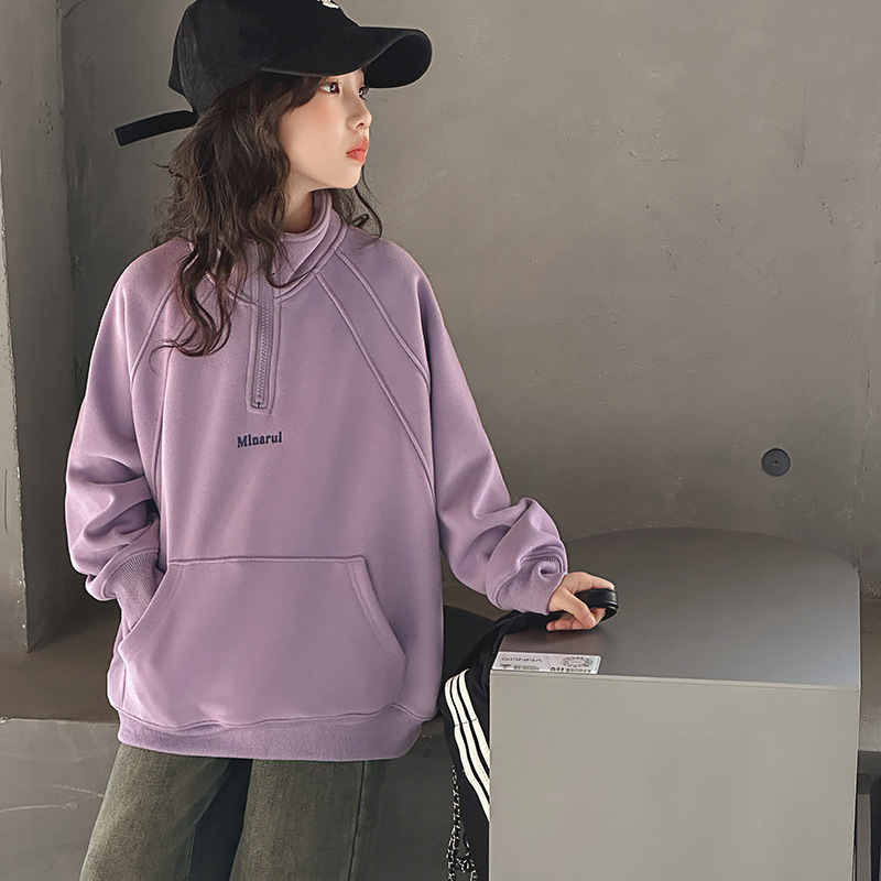 소녀 스웨터 봄과 가을 2024 새로운 서양식 어린이 봄 의류 큰 어린이 얇은 스포츠 캐주얼 지퍼 긴팔 탑