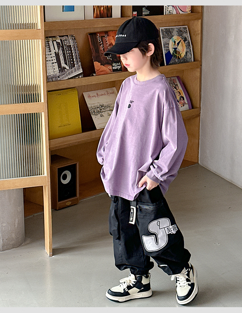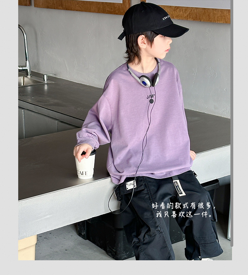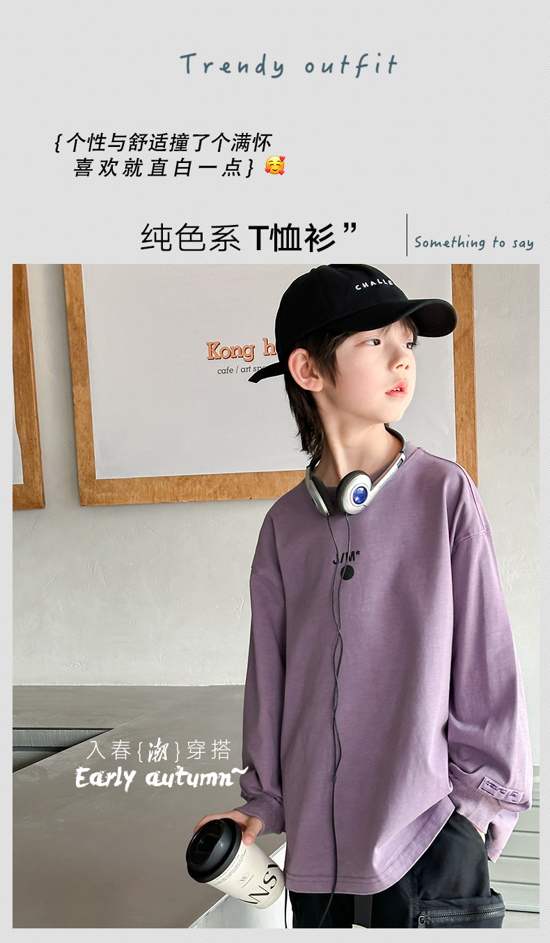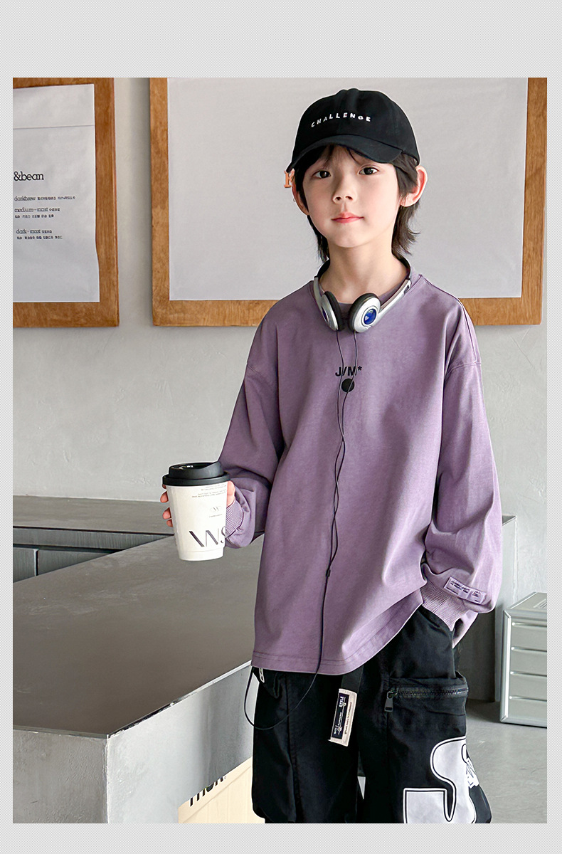 소년의 긴 소매 티셔츠 봄과 가을 2024 새로운 어린이 가을베이스 셔츠 중 큰 어린이 가을 얇은 스웨터 트렌디스토어 가기