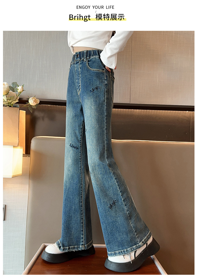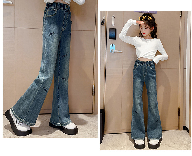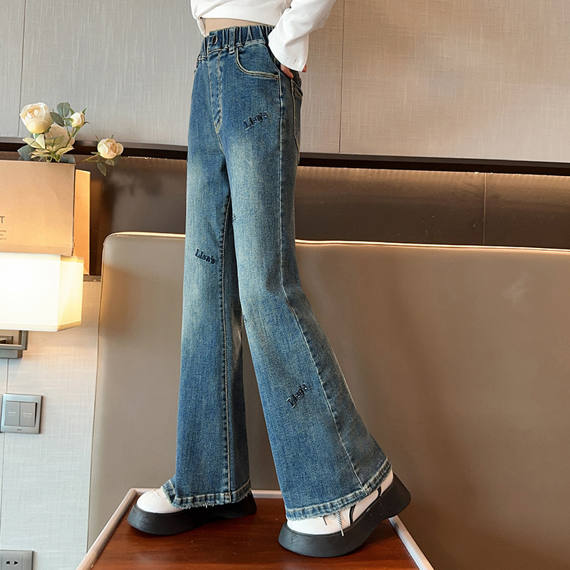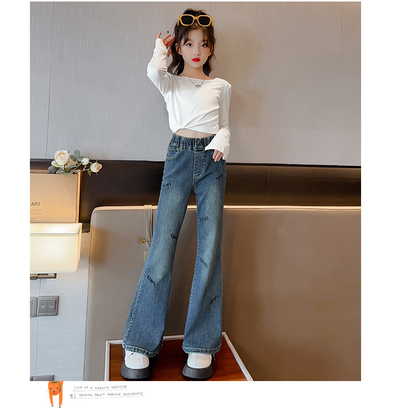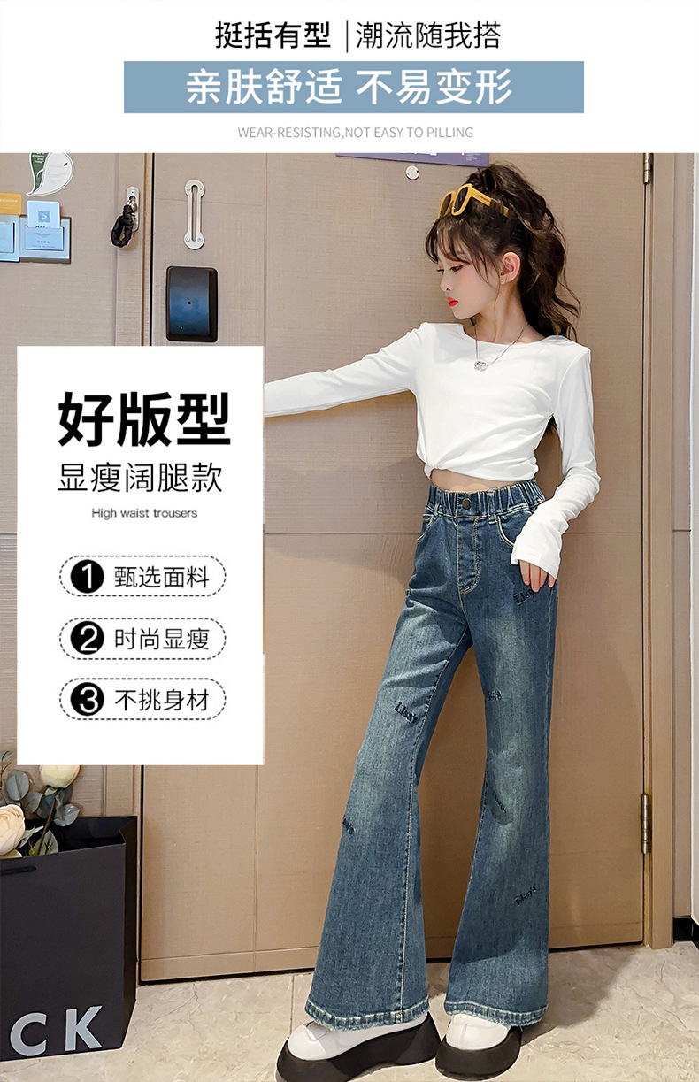 소녀 바지 봄과 가을 외부 착용 중 큰 어린이 캐주얼 스트레치 바지 어린이 봄과 가을 착용 소녀 데님 벨 바지