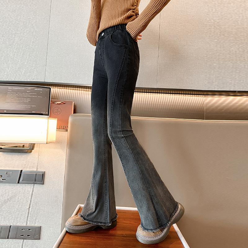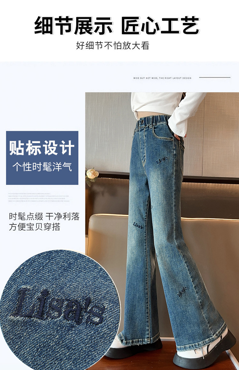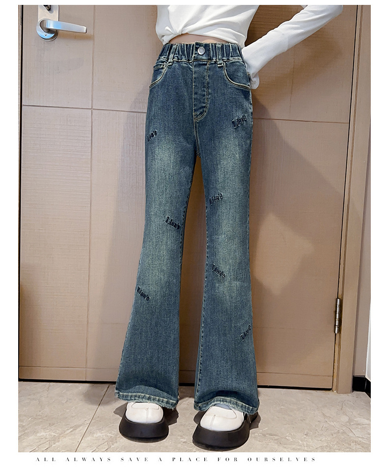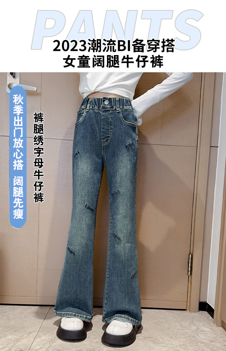 소녀 바지 봄과 가을 외부 착용 중 큰 어린이 캐주얼 스트레치 바지 어린이 봄과 가을 착용 소녀 데님 벨 바지