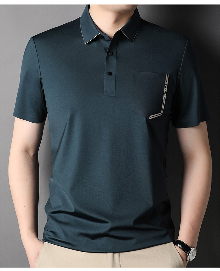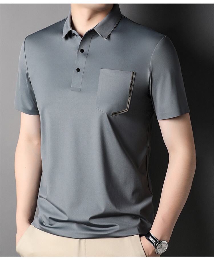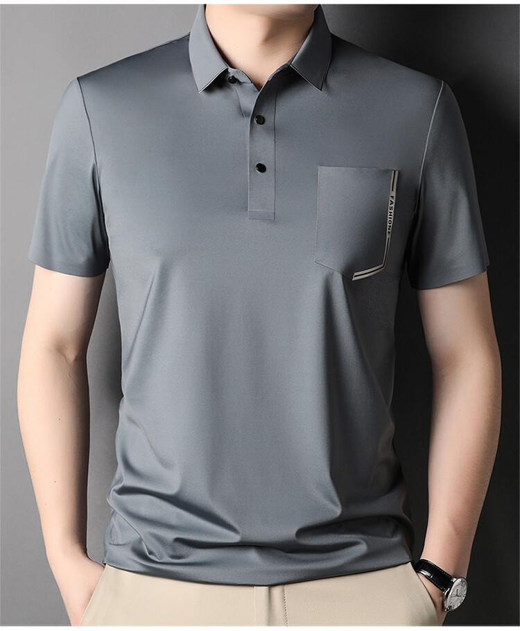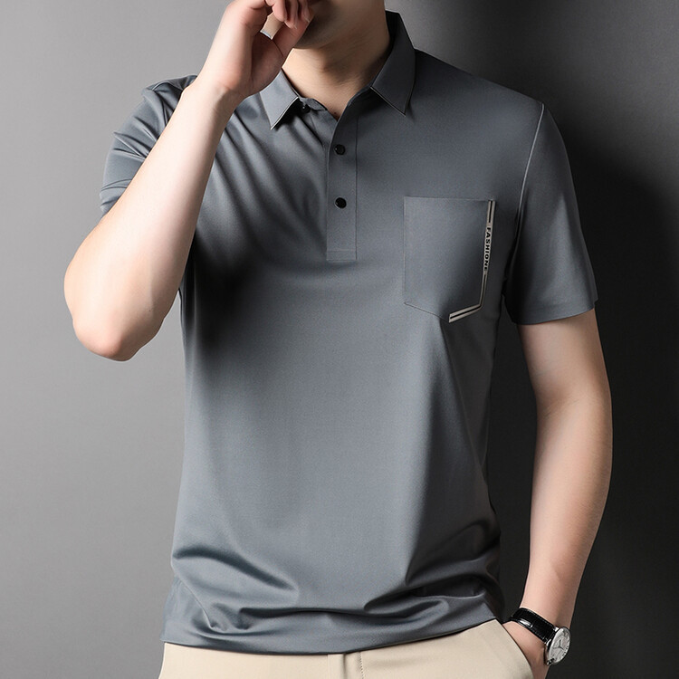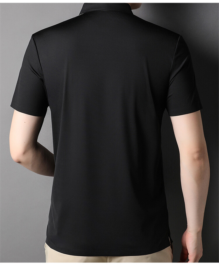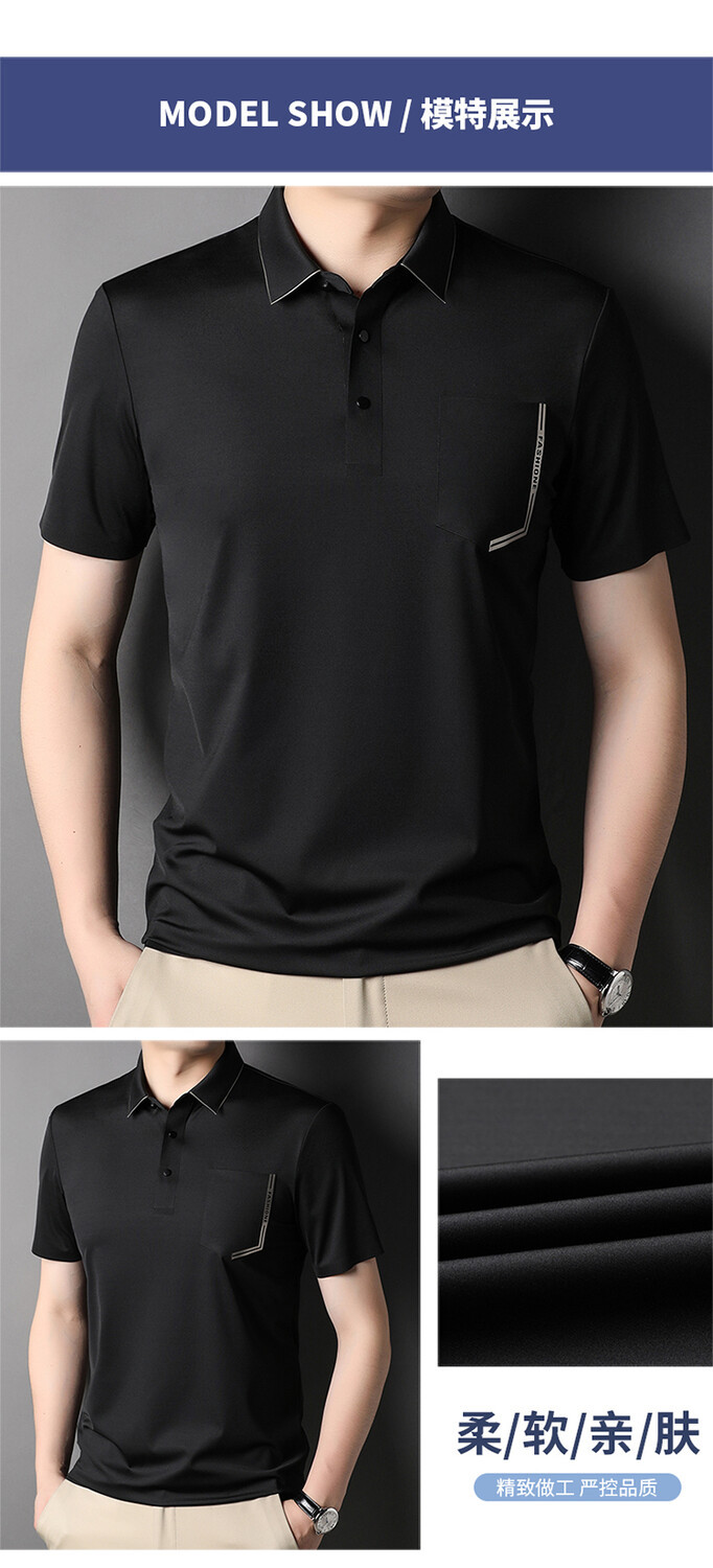아이스 실크 반팔 티셔츠 남성용 옷깃 원활한 폴로 셔츠 아이스 느낌 탑 옷 여름 남성 캐주얼 하이 엔드 하프 슬리브 티셔츠