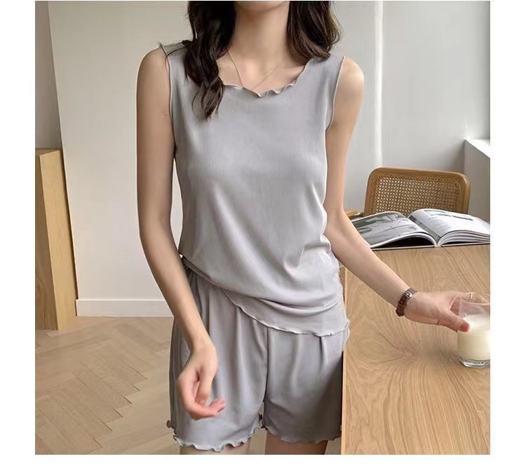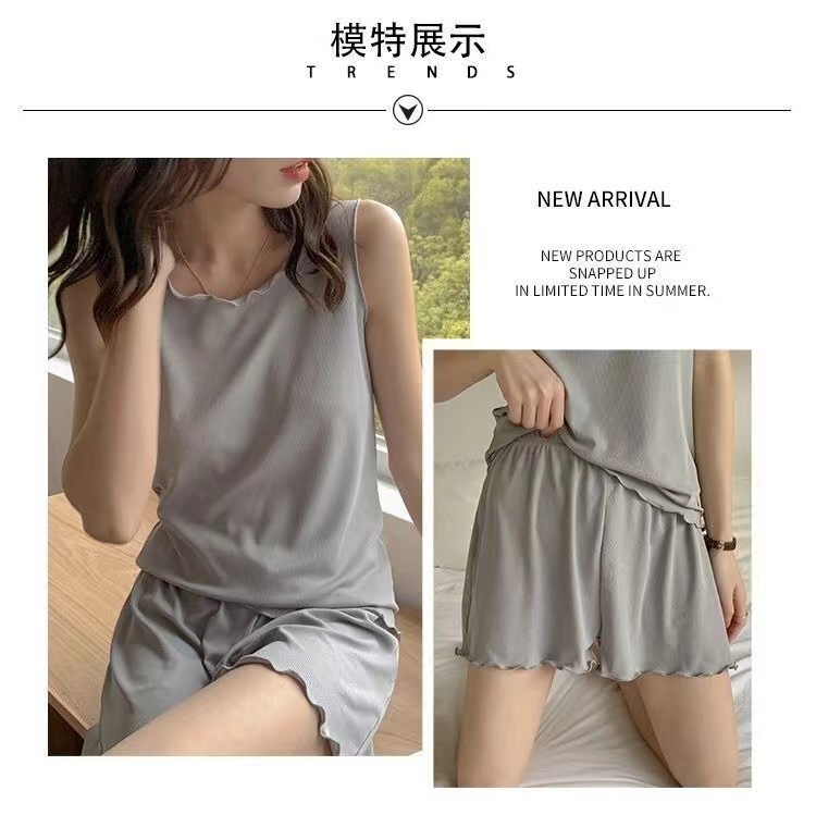 봄 여름 홈웨어 아이스 실크 잠옷 투피스 여성 조끼 민소매 쿨 플러스 사이즈 얇은 통기성 잠옷스토어 가기
