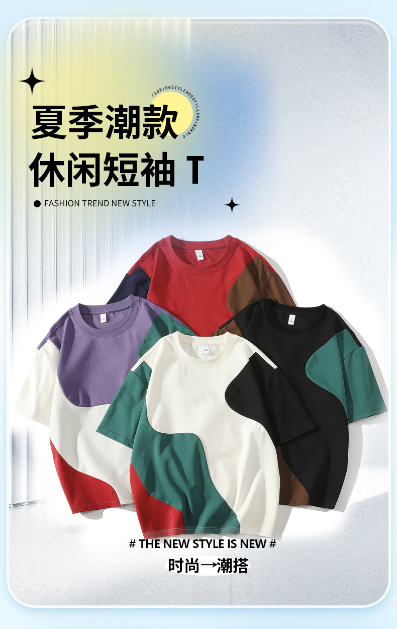 여름 반팔 티셔츠 남성 패션 브랜드 얇은 느슨한 반소매 티셔츠 학생 둥근 목 캐주얼 반소매 티셔츠 남성용