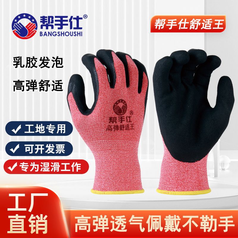 도매 고무 거품 노동 장갑 내마모성 미끄럼 방지 작업 통기성 라텍스 담그는 부드러운 높은 탄성 건설 현장 작업스토어 가기