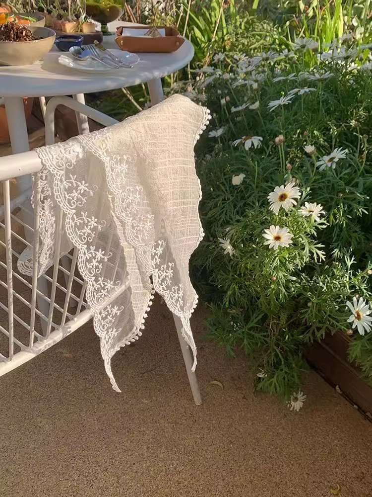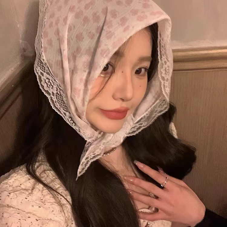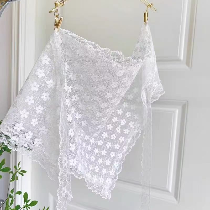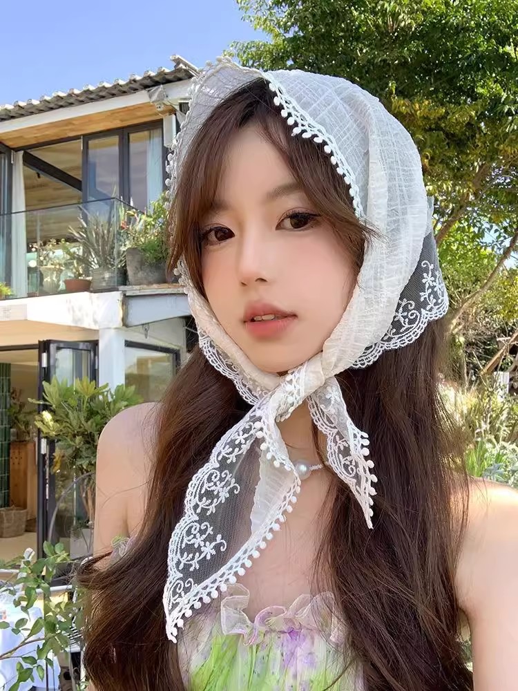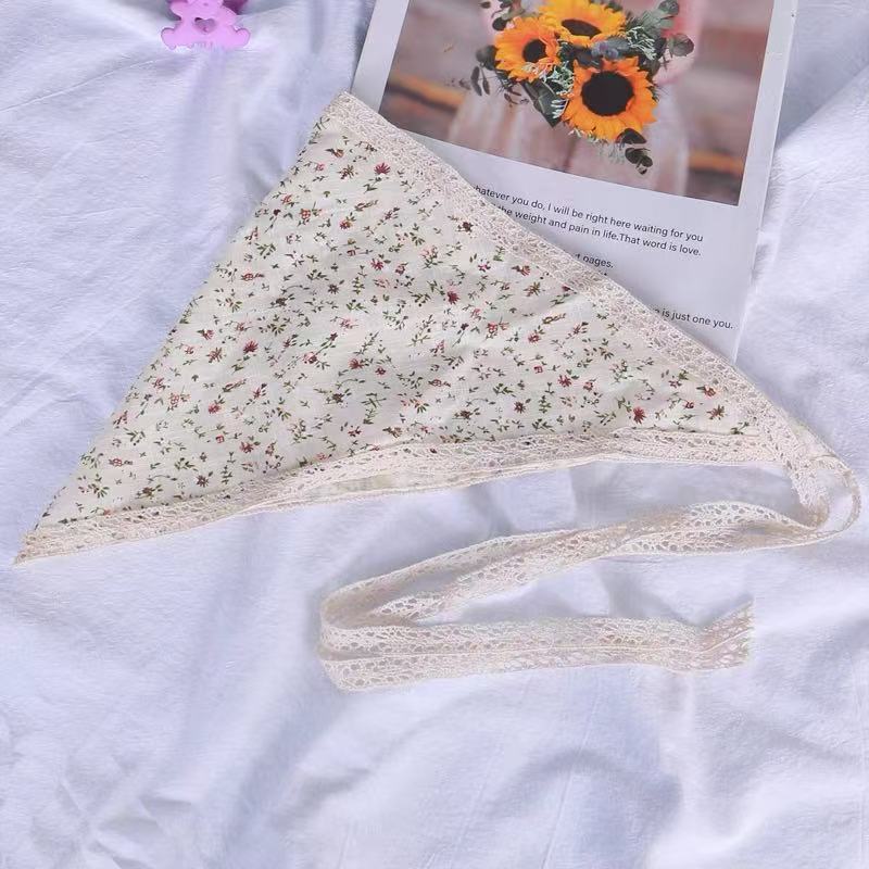 프랑스 목가적 인 스타일 헤드 스카프 흰색 레이스 삼각형 스카프 헤드 스카프 헤어 밴드 프랑스 폐쇄 발가락 패션 사진 인터넷 유명 인사 꽃스토어 가기