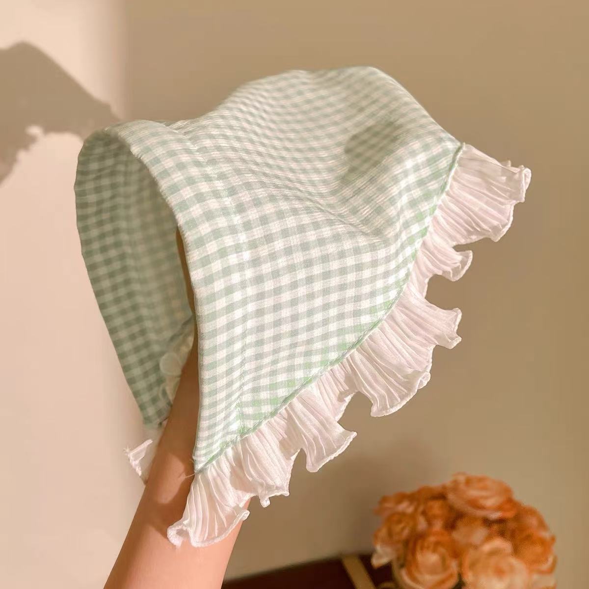 • 6 # 녹색 격자 무늬 레이스 머리 스카프